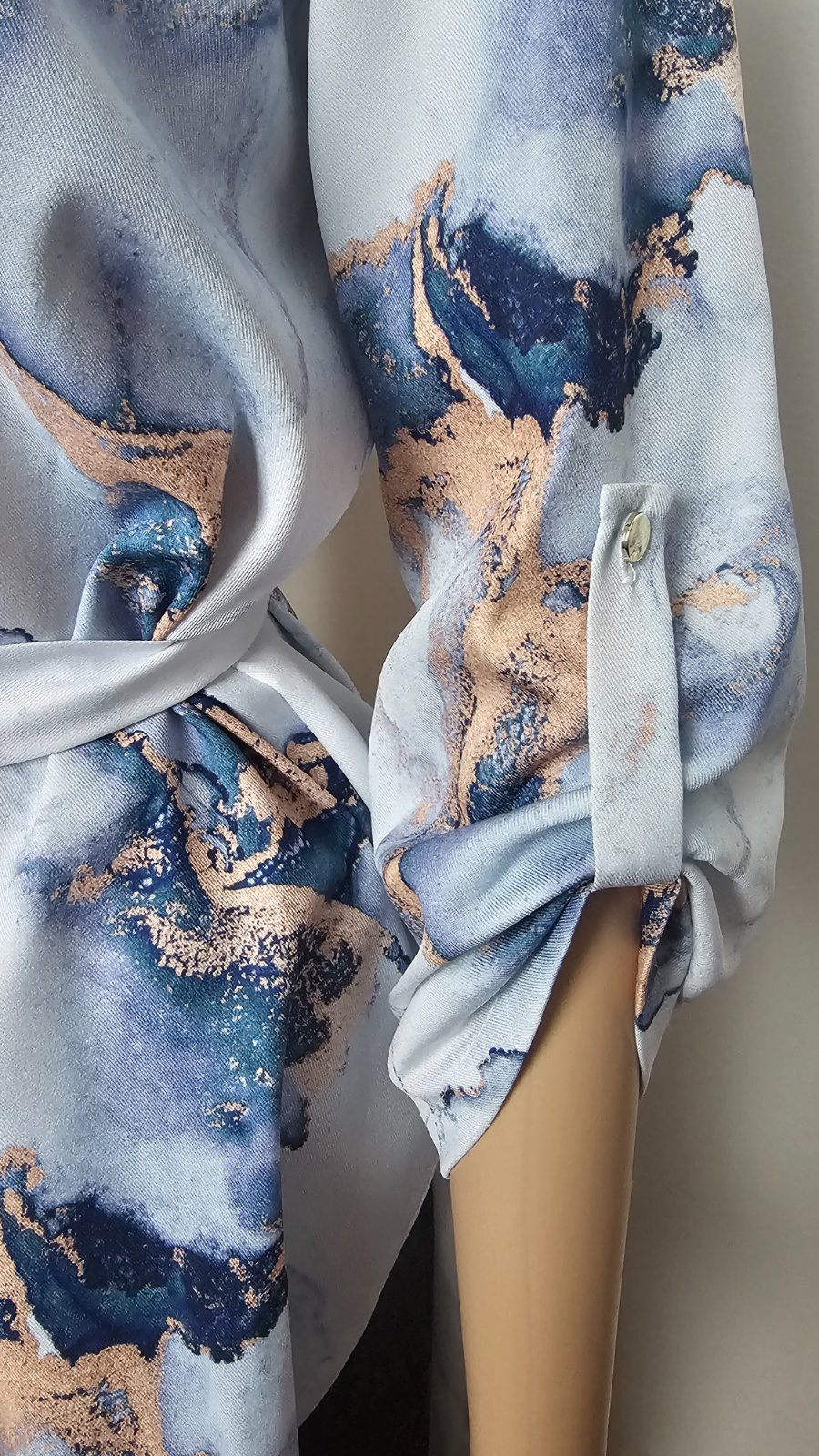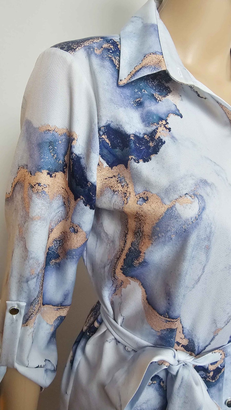 Takmer nová. Dĺžka 81 cm, šírka v hrudníku max cca 55x2 cm. Príjemný vzdušný materiál, 70% polyester, 30% viskóza. Zn. La Blanche. Na bokoch výstrih.