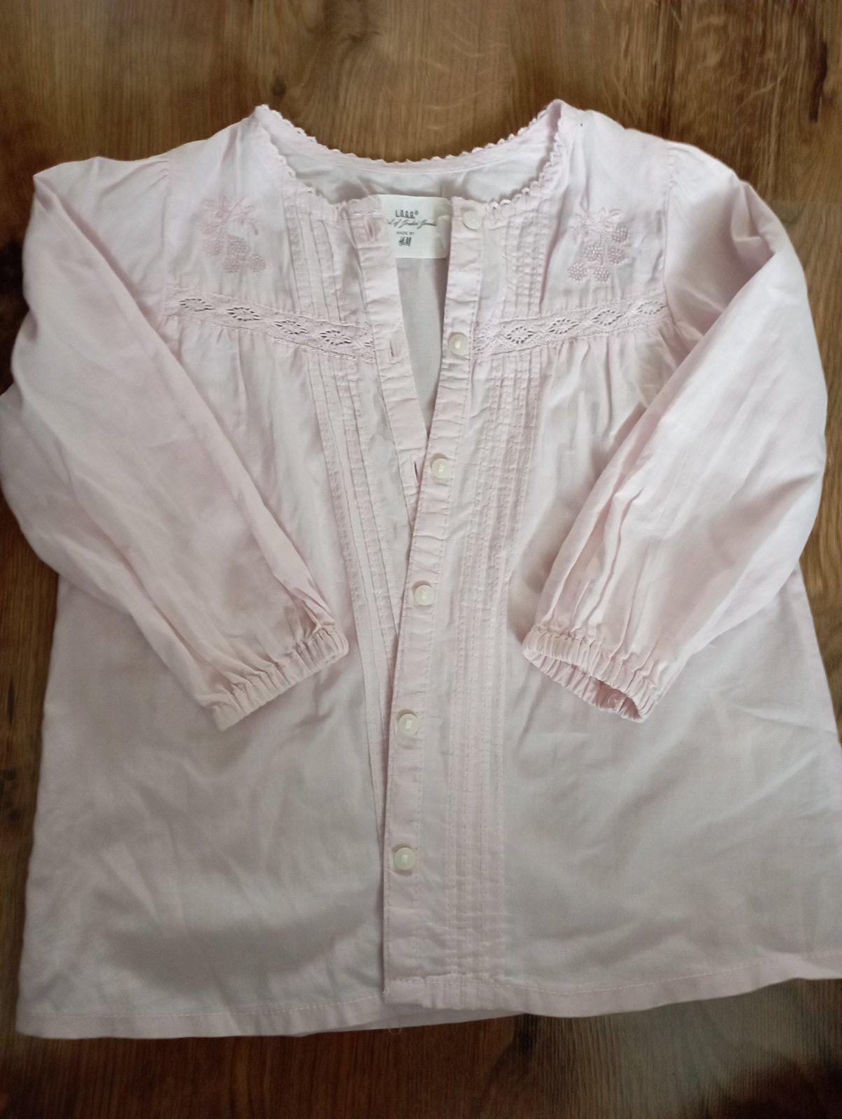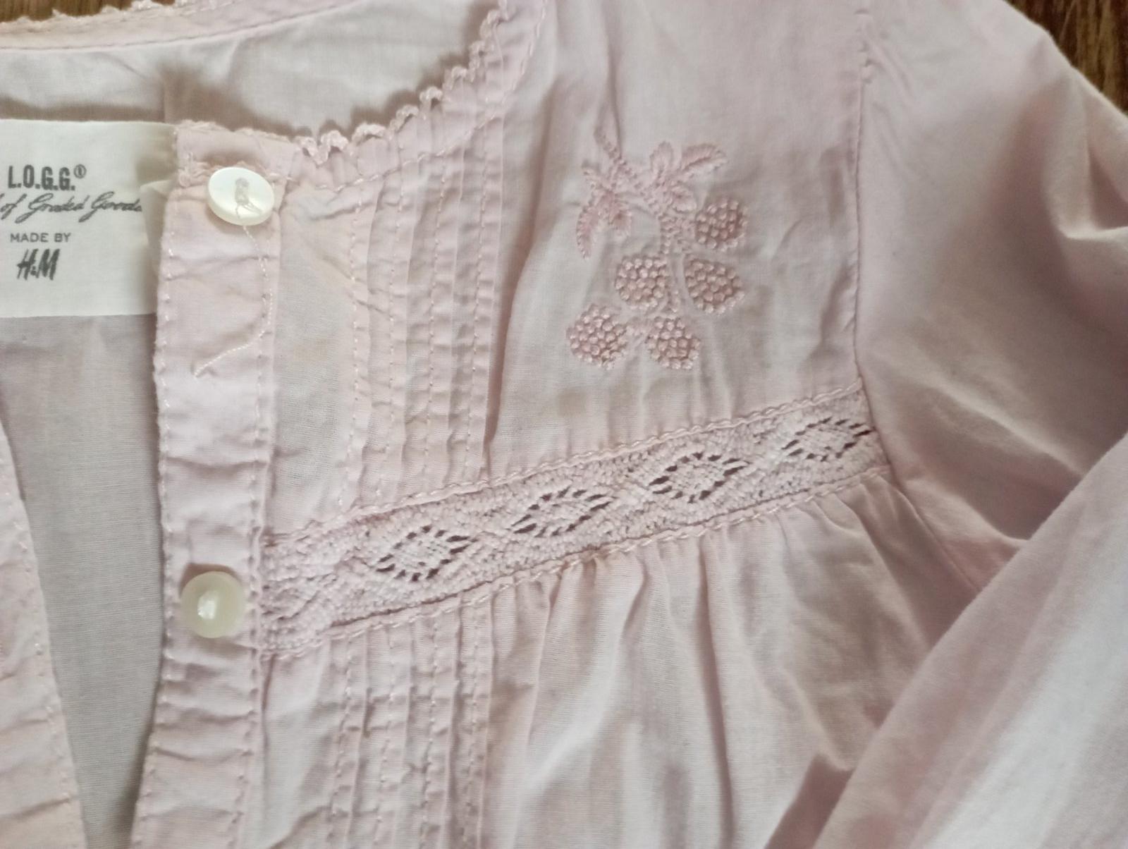 Pár krát oblečená, v super stave. 100% bavlna. Mierne rozšírený strih. Vpredu vyšívaná,s krajkou a ozdobnými zámikmi. Rukáv ukončený do gumičky. Pekná jemná ružová farba. Šp paz 32, dĺžka PD max 42