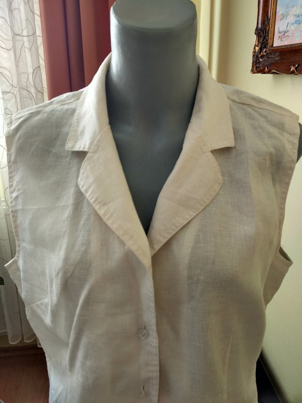 100 % ľan, smotanová farba, prsia 52 x2, dĺžka 59, bez známok nosenia