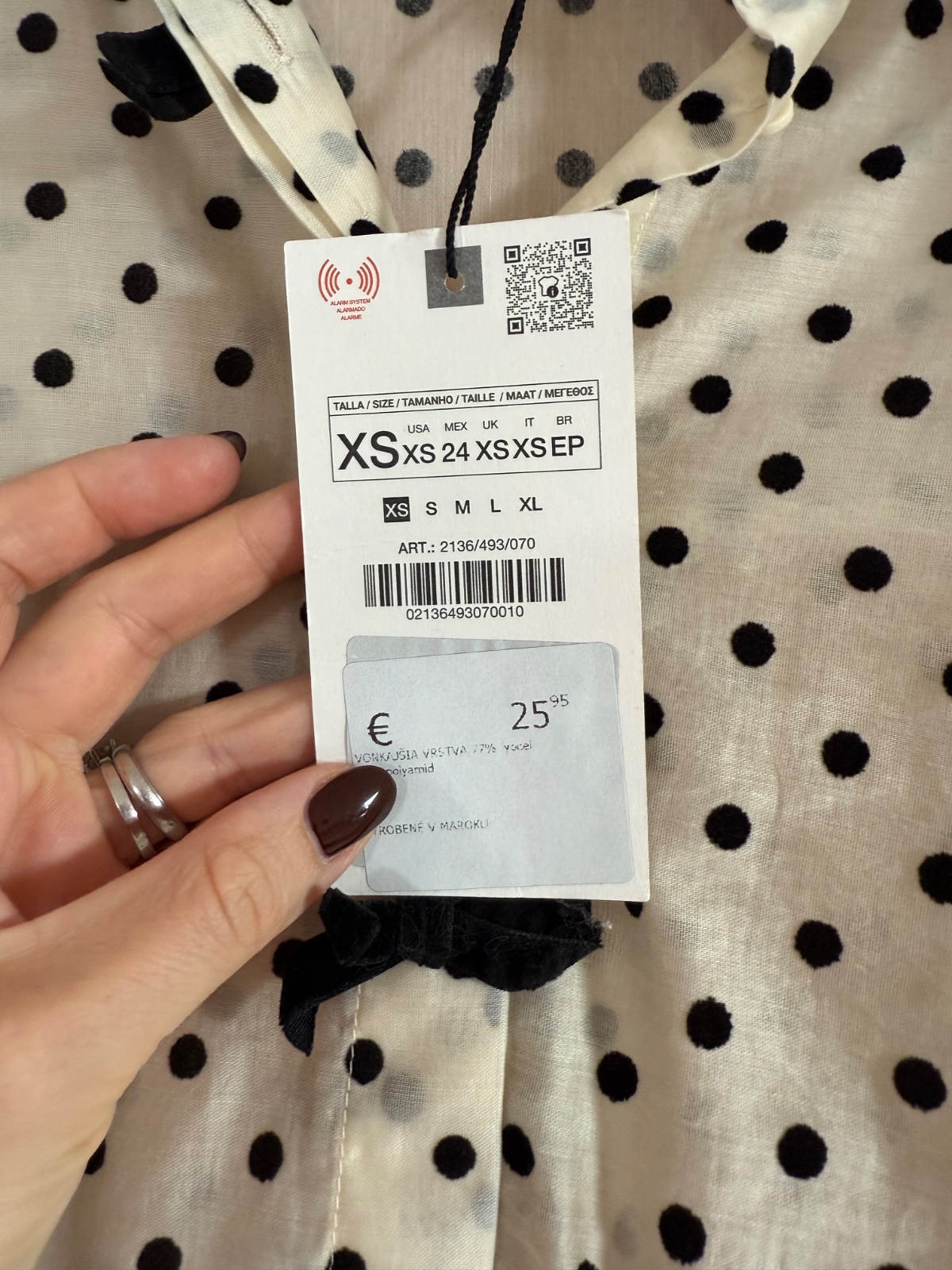 Nádherná blúzka Zara s guličkami. Veľkosť Xs je to mierne voľnejší strih. Blúzka je nová s visačkou.