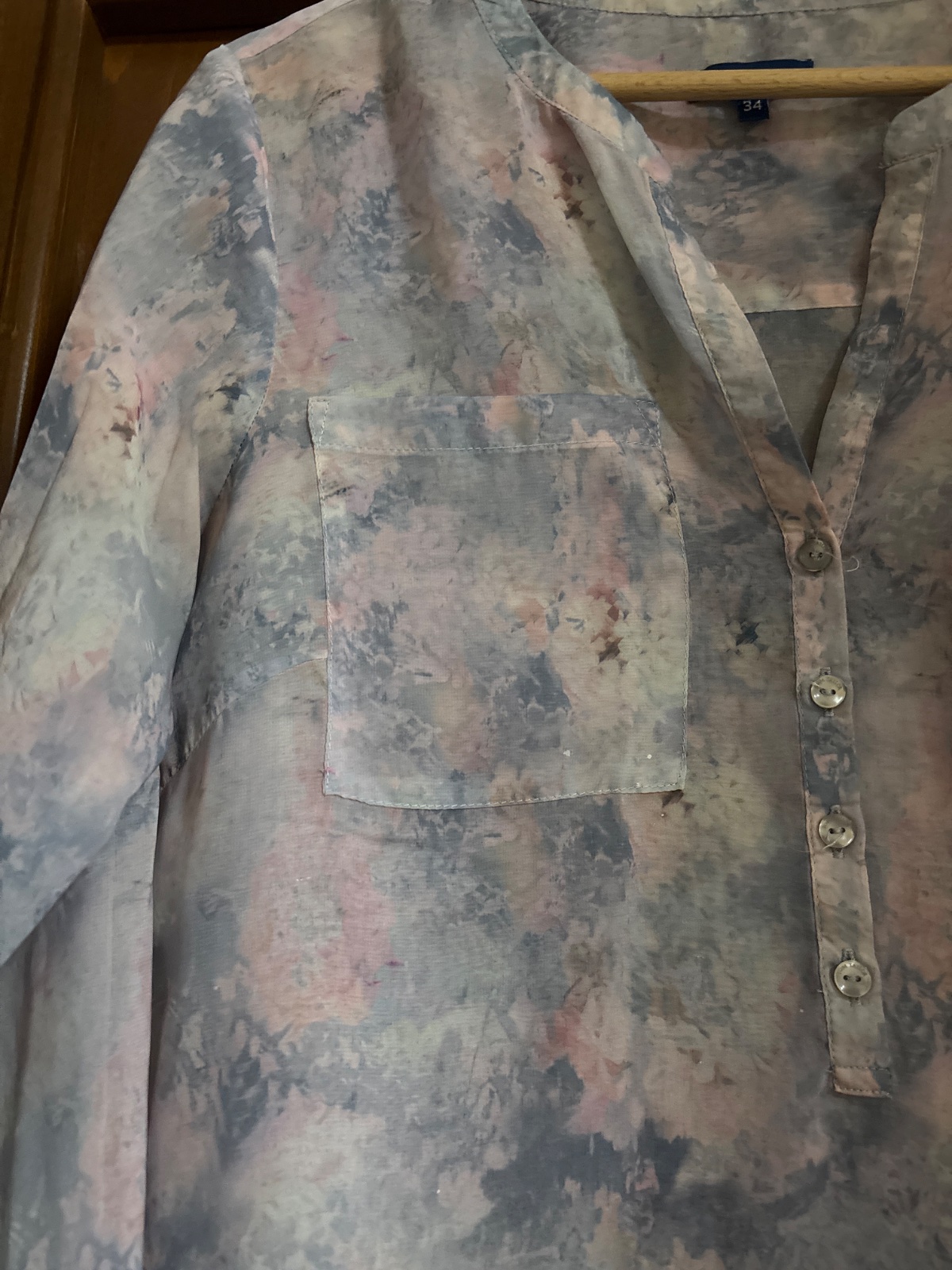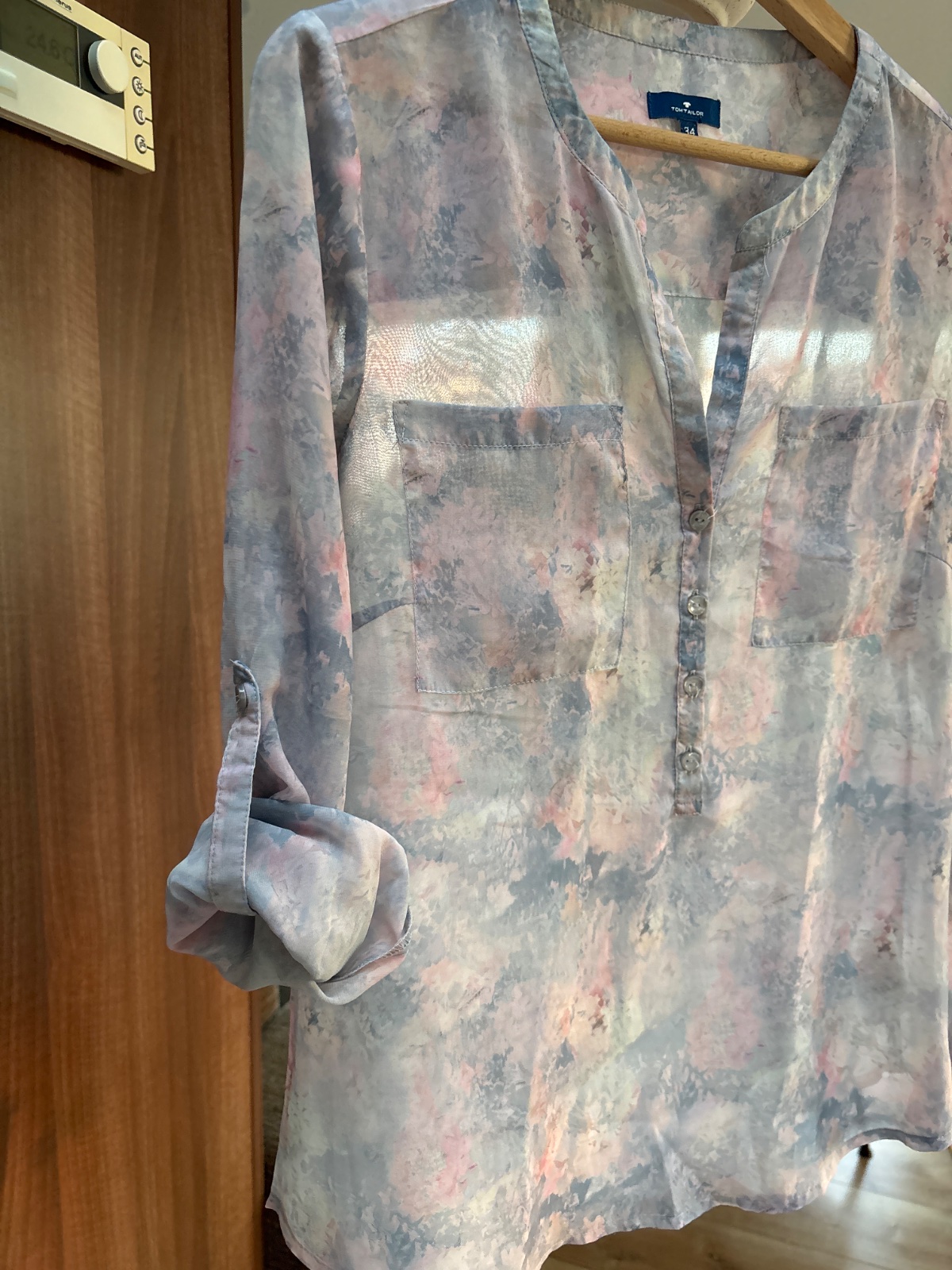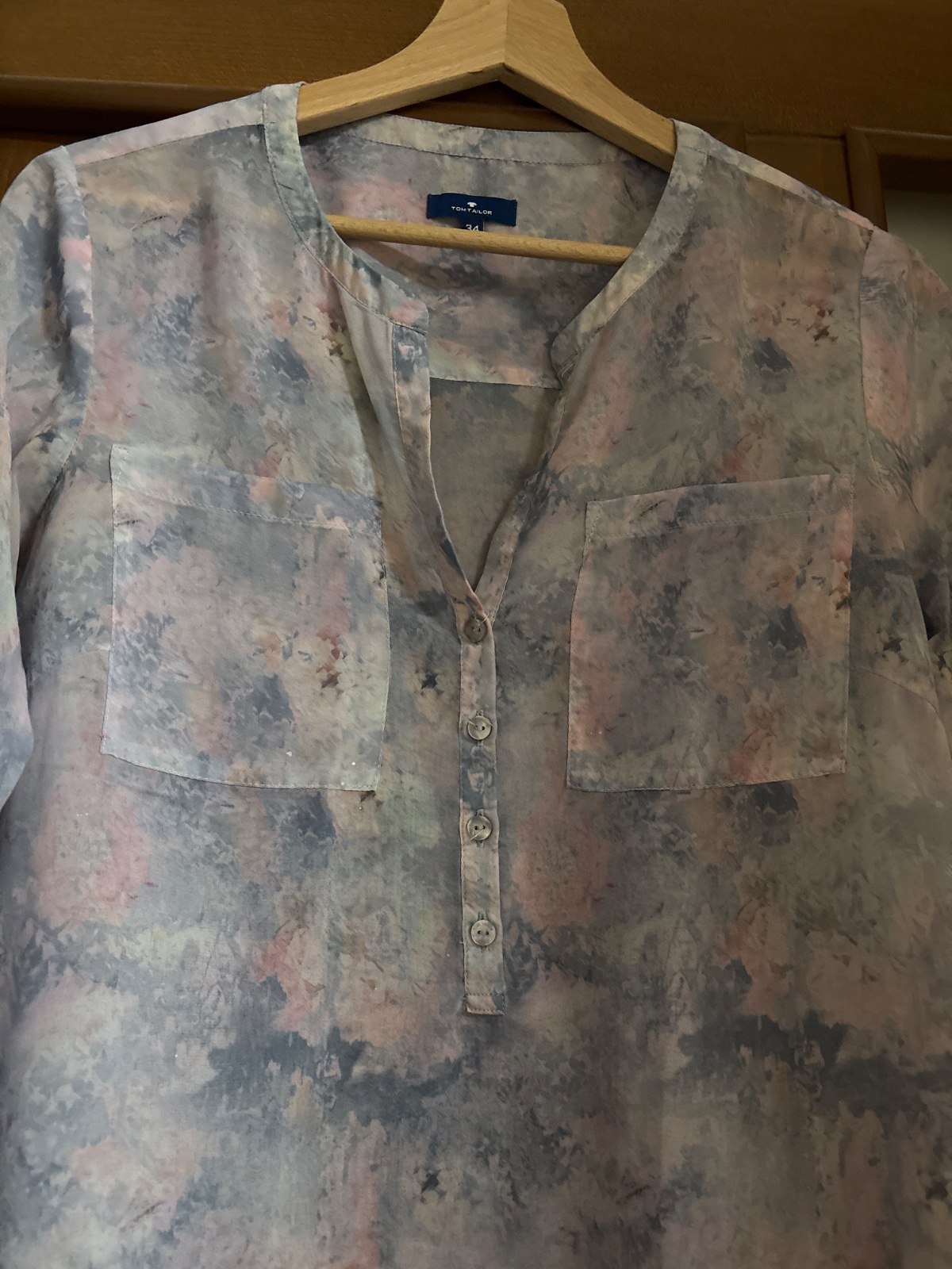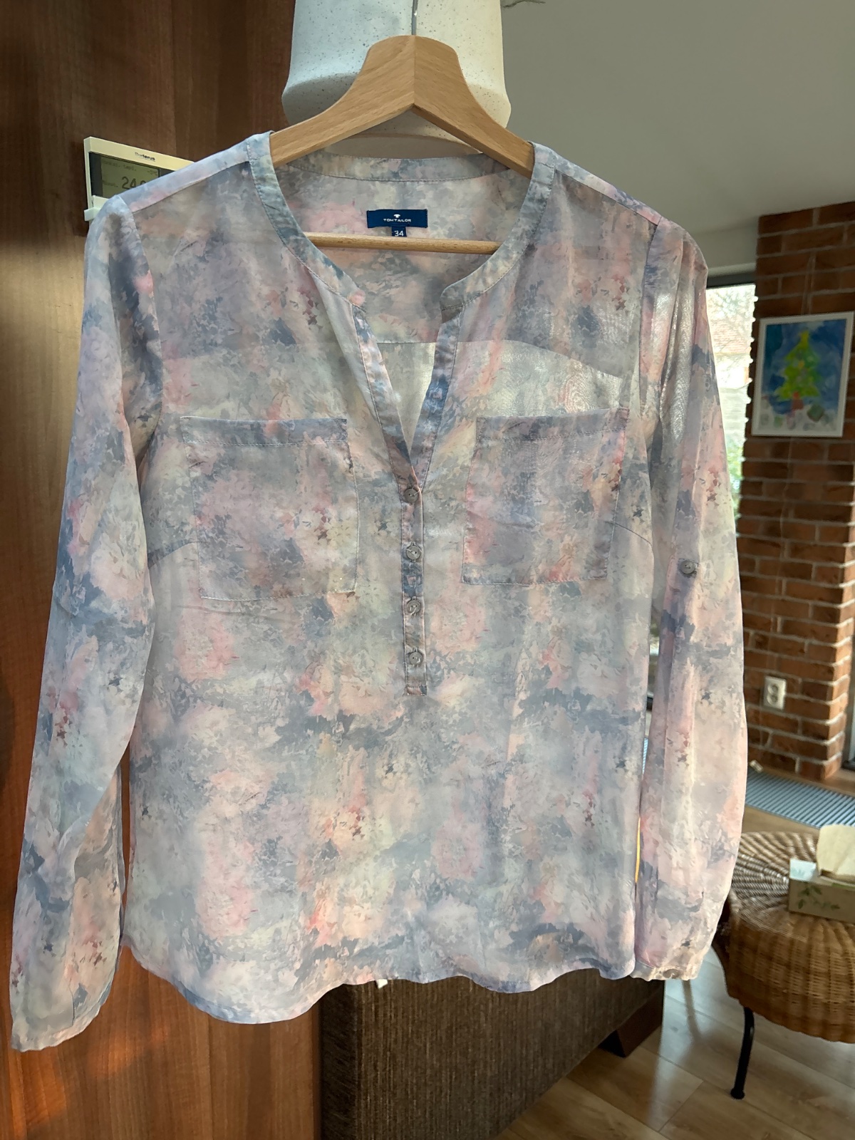 Krásna letná mierne priesvitná blúzka s možnosťou nastavenia rukávov. Veľmi ľahká a voľna. Prijemne sa nosí a kombinuje keďže ide o zmes farieb