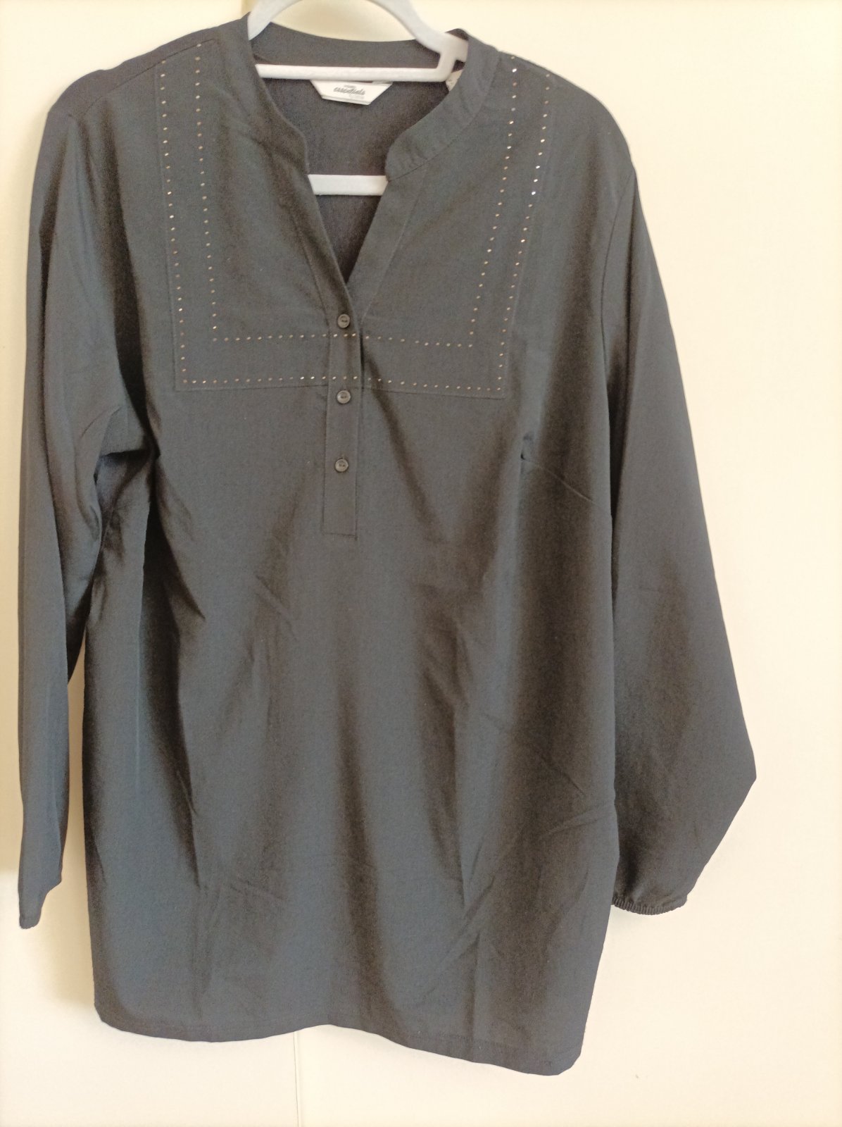 Čierna predľžená blúzka. Farba pekná čierna,nie ako na fotke. Raz oblečená.