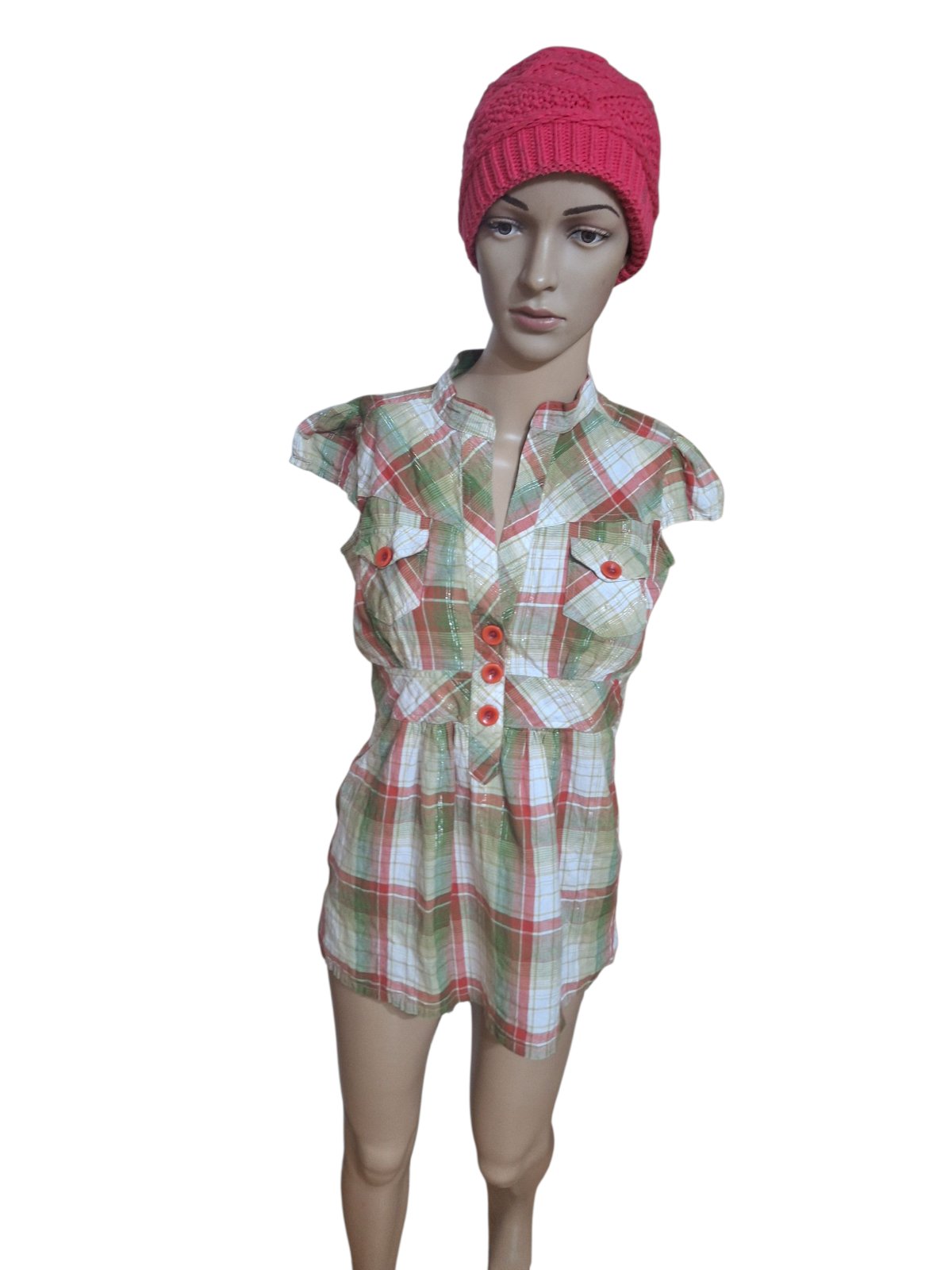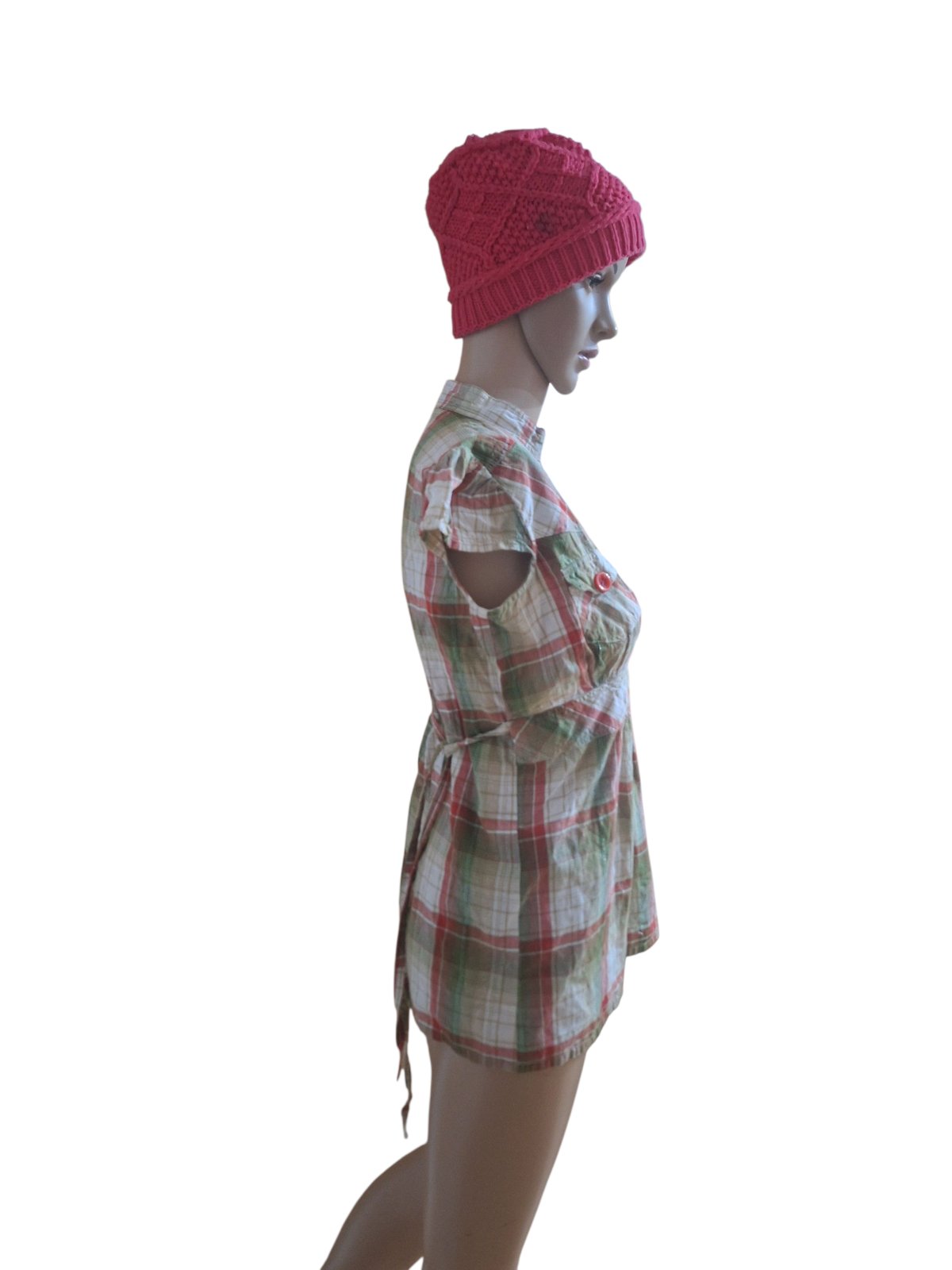 Krásna ružová drobno-kockovaná (pôsobí ako pásikavá) blúzička s nazberkanými rukávmi, a pútkami na opasok (bez opaska) v skvelom stave. Materiál: zmes bavlny s elastanom Šírka pás: 38cm Šírka pod...