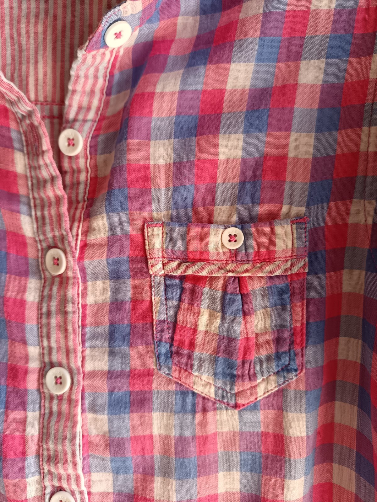 100% bavlna, veľmi príjemný materiál na leto, 2 tenučké vrstvy - zvonku kocka, zvnútra bielo-ružový pásik