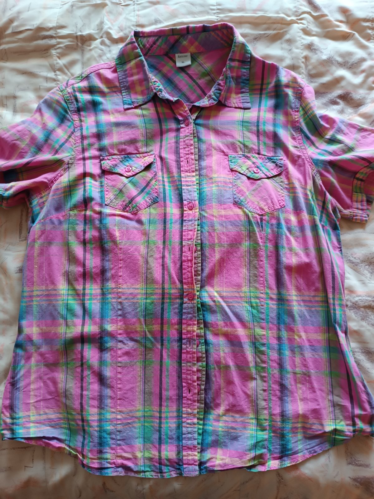 Veľmi dobrý stav, veľkosť písaná XL, pazuchy okolo 56 cm, dĺžka 66 cm. Príjemný materiál. Cena 3 eurá plus poštovné.