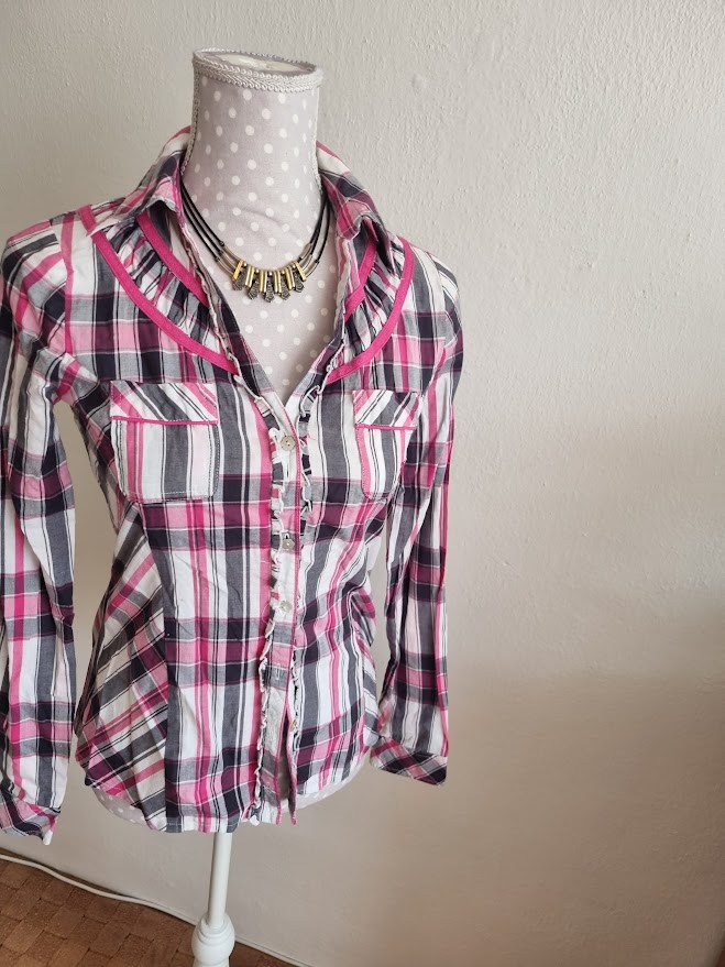 Ružovo-sivo-biela romantická košeľa Tom Tailor S