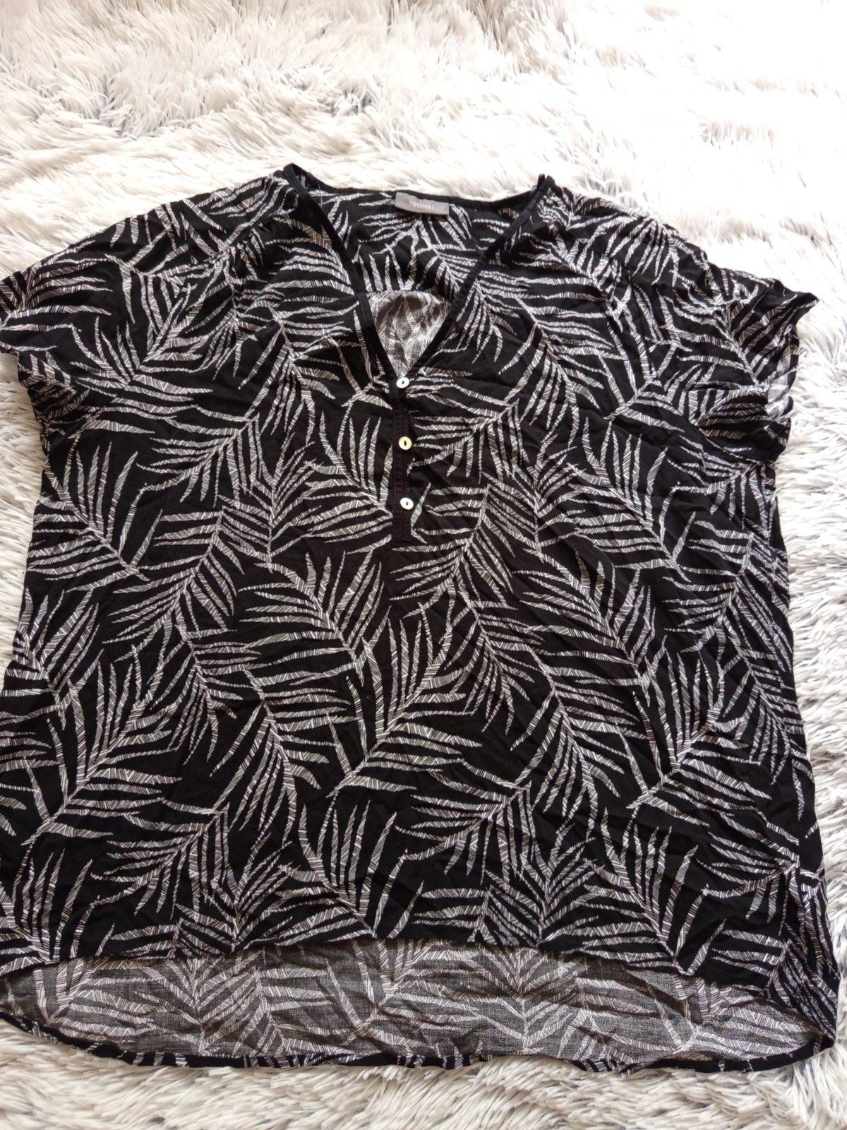 Blúzka športovejšieho typu. materiál 70% viskóza, 30% polyester. DL. 71 cm, šírka cez prsia 62X2 cm. Sedí na veľkosť 46/48. Blúzka je vo výbornom stave, bez poškodenia.