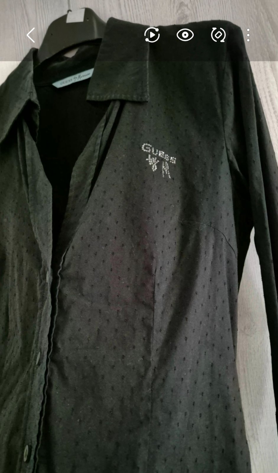 Top stav, ziadne známky nosenia. Lahucká, jemne lesklá blúzka GUESS. Zapínanie na male gombíky, hore velký padavý golier. Velkost S aj sedi.