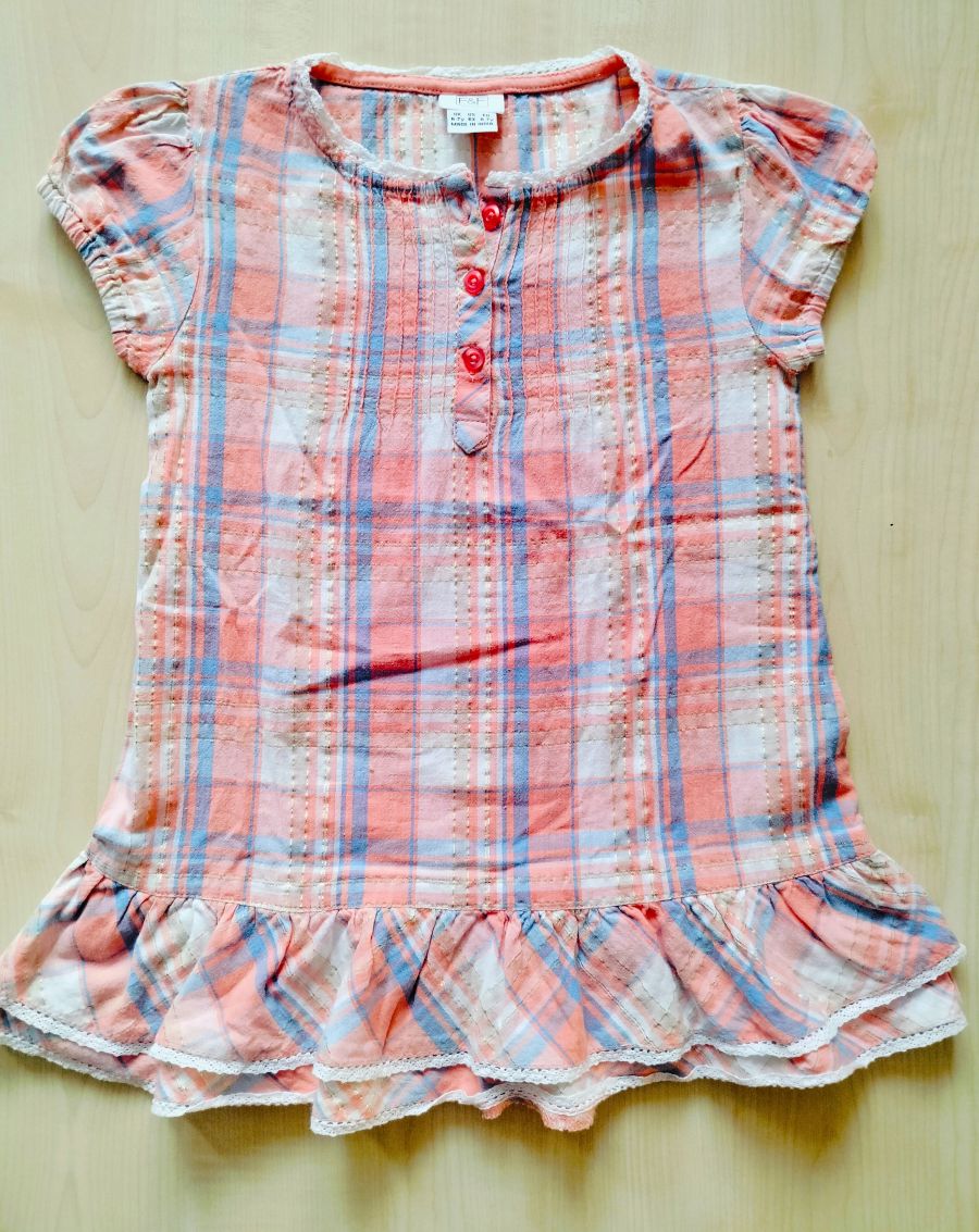 Krásna tunika v jemných pastelových farbách pretkávaná zlatou niťou. Top stav, ako nová. Rozmery sú na foto. Zloženie: 98é% bavlna, % metalické vlákno.