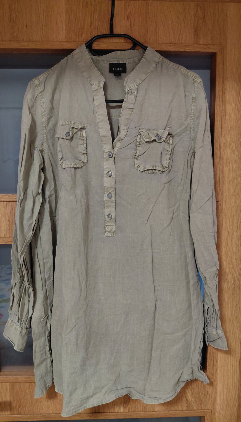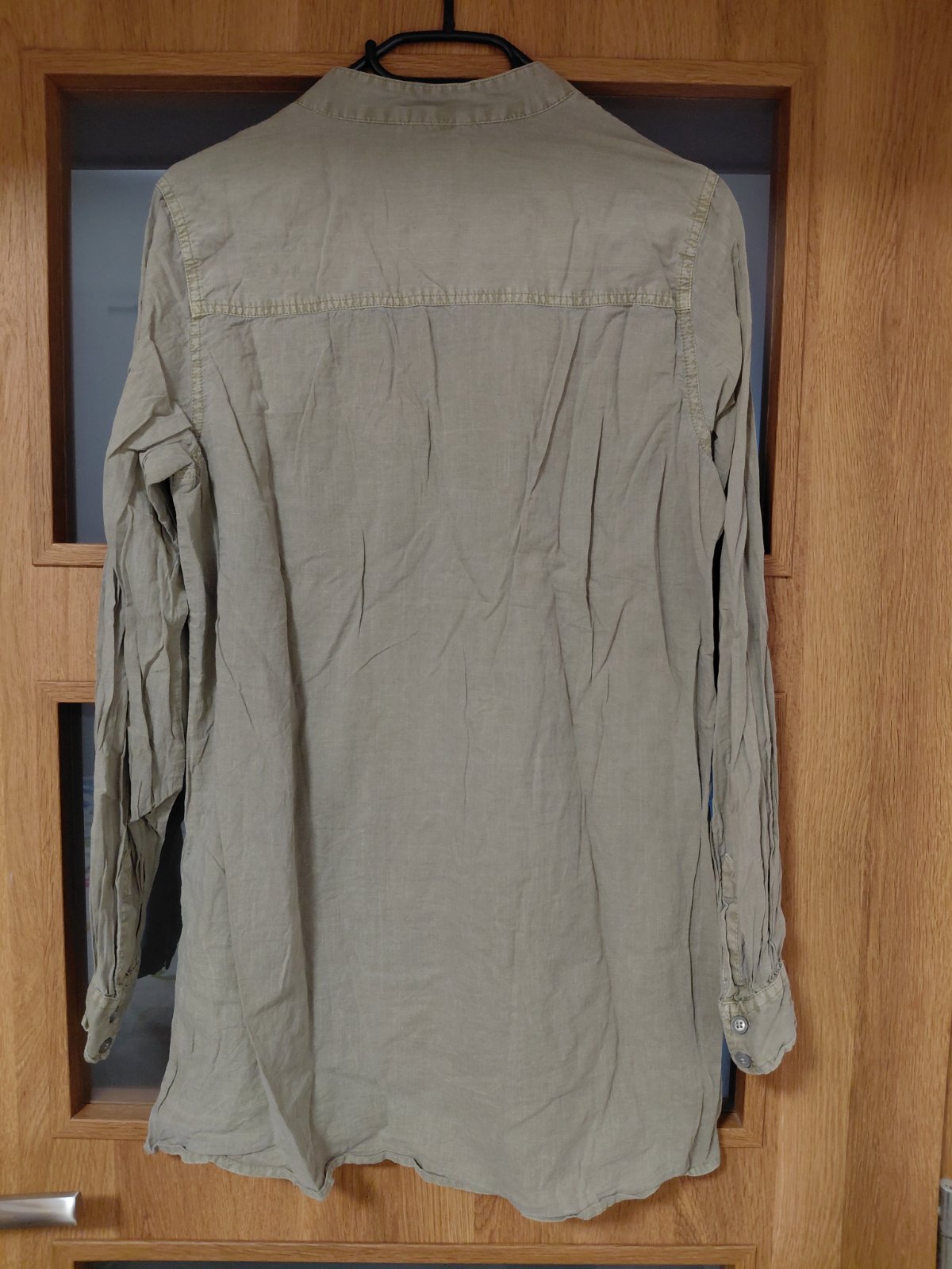 Bavlnena kosielka s dlhym rukavom a vystrihom do V. Rukavy mi pridu trosku kratsie ako velkost 36. Material 100% bavlna. Dlzka: 61cm Cez prsia: 45cm Rukav: 94cm