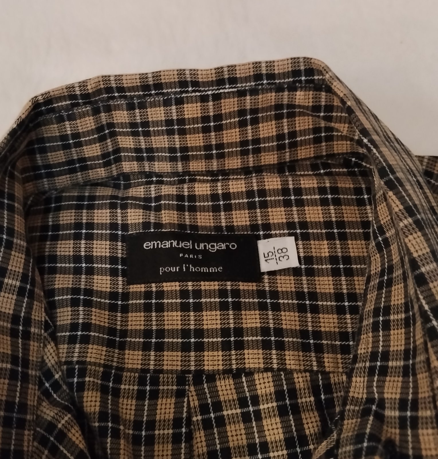 Luxusná pánska košeľa EMANUEL UNGARO Paris • Made in Italy • 100% bavlna • elegantný kockovaný vzor