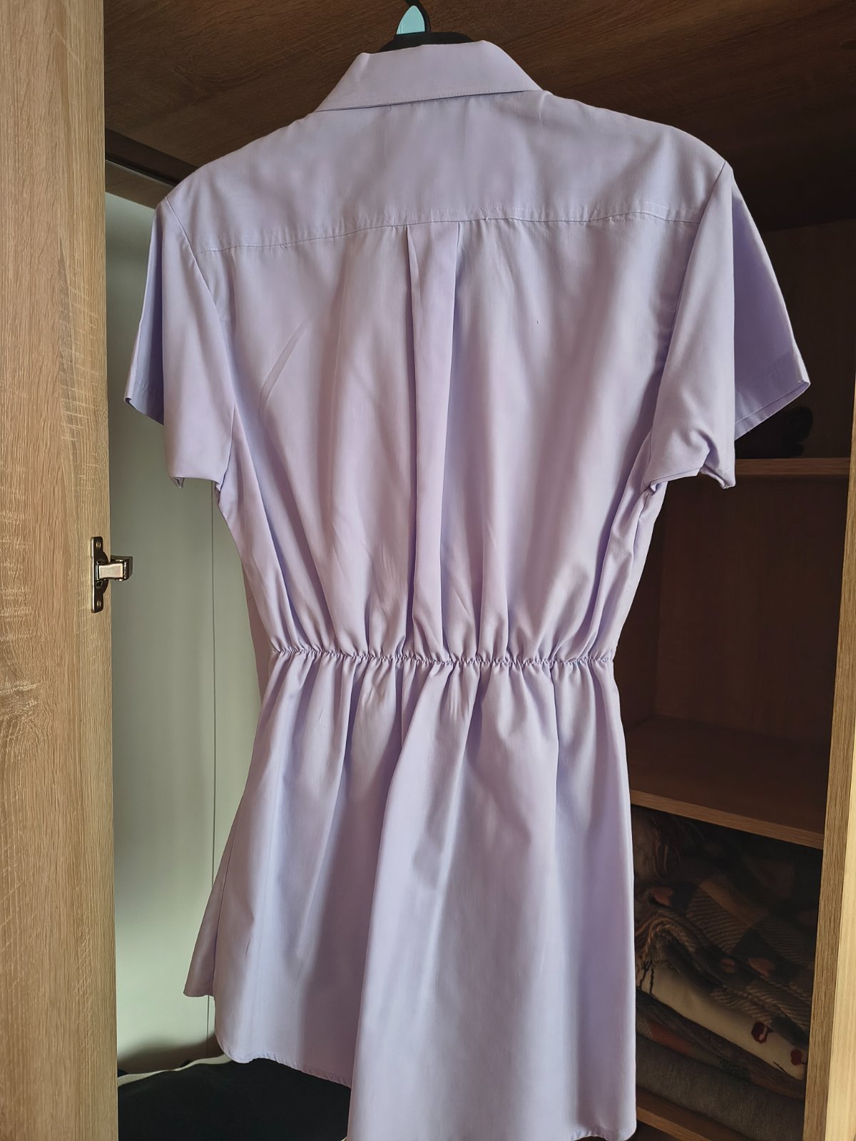 Vel. S / 36, farba je sedomodra az sedofialova, gombiky sa rozopinaju, rukavy sa daju tiez vyhrnut a pripnut (vid foto). Oblecena 1x