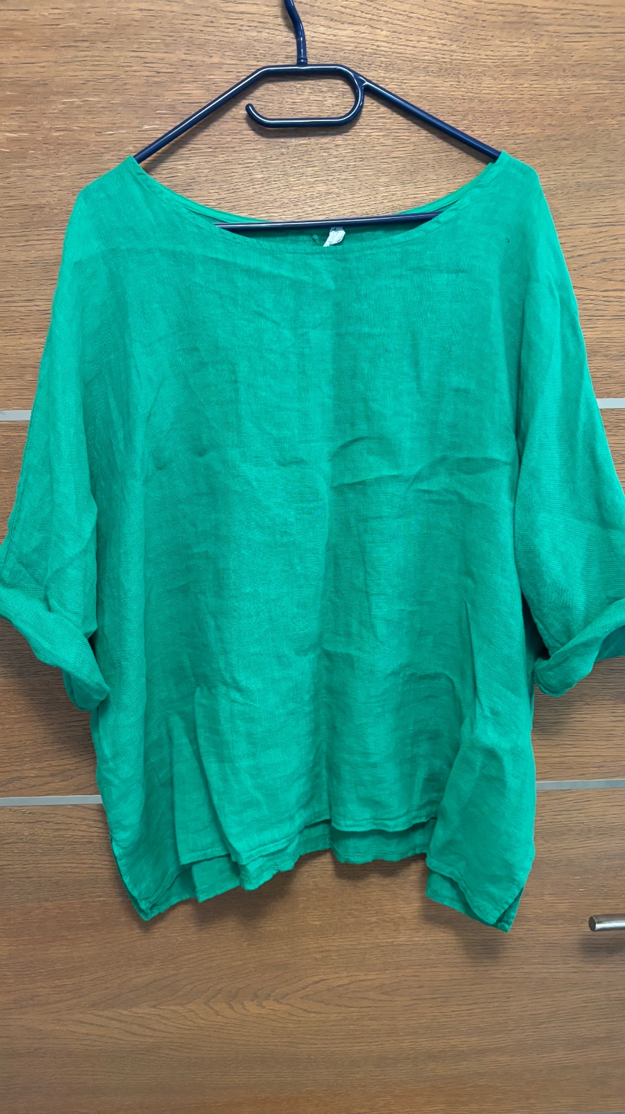Bledozelena Krásna blúzka 1x poráža nenosené Prsia 51cm Dĺžka 49 plus uzol Rukáv 3/4 s gombíkom