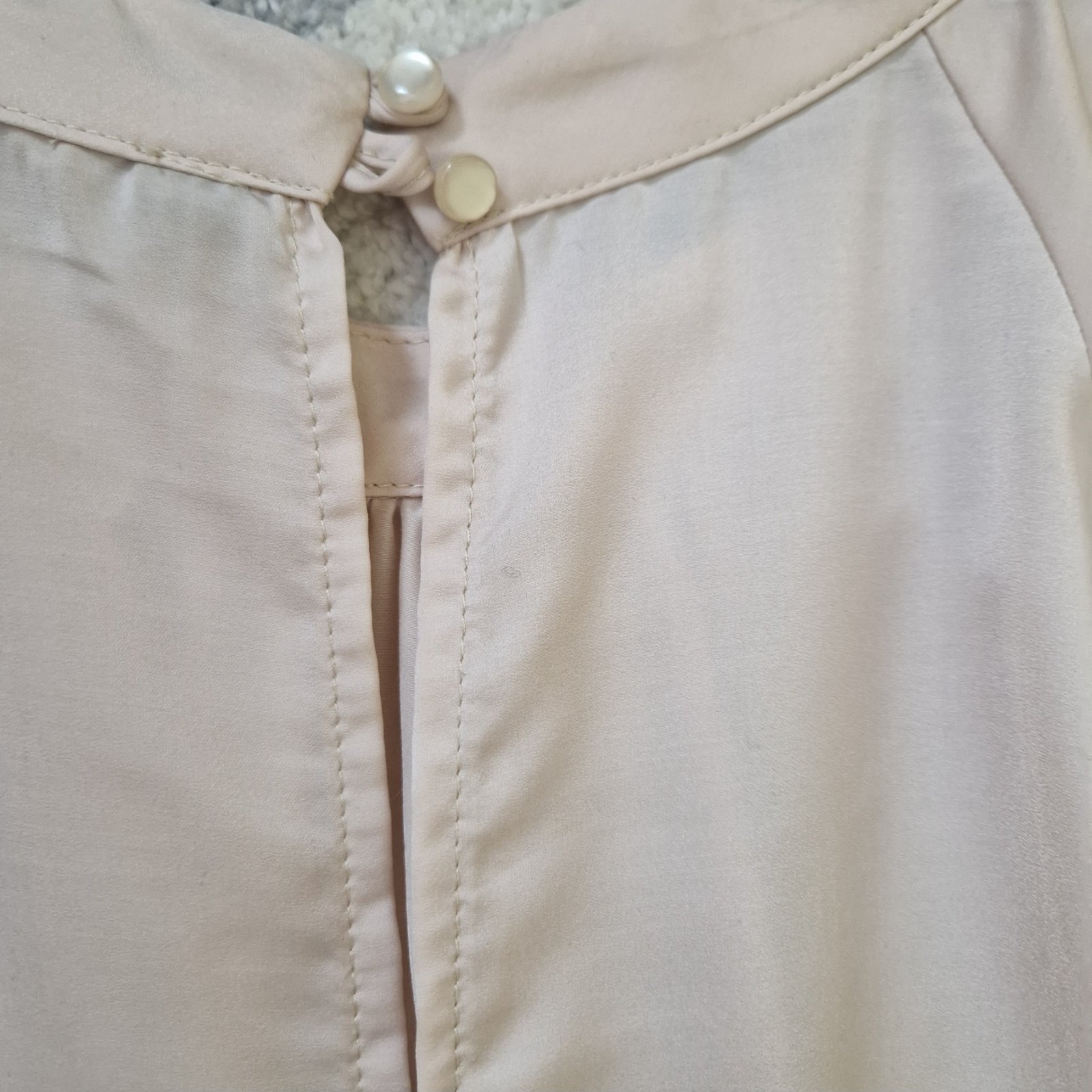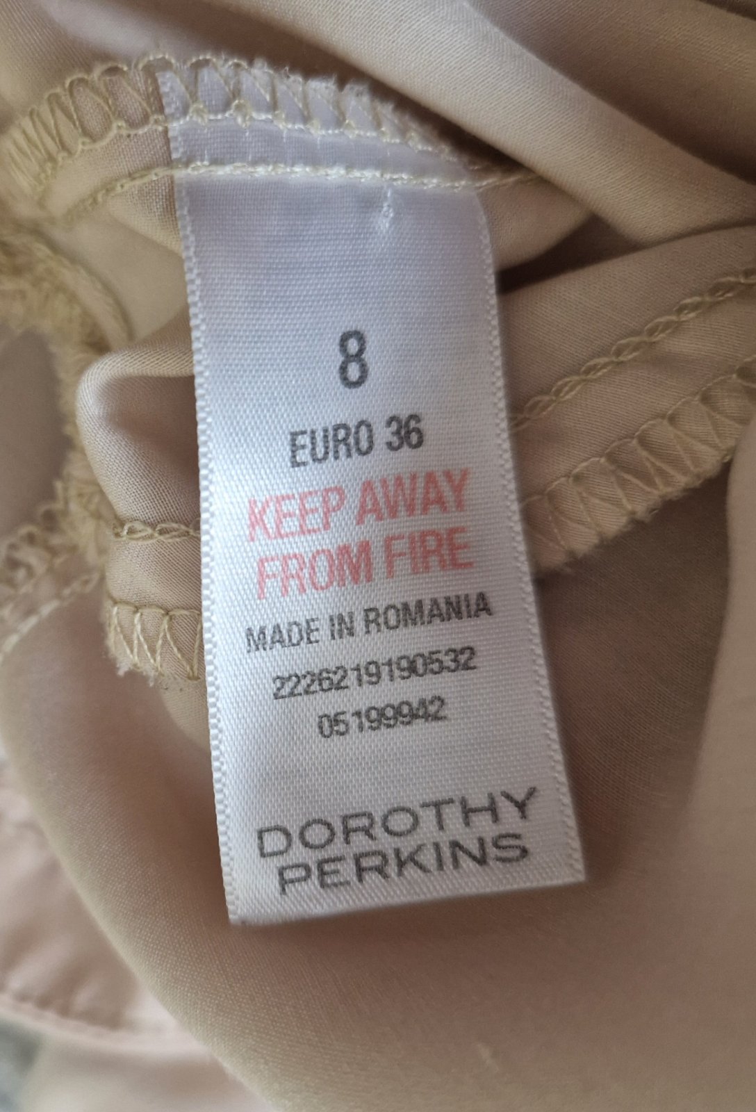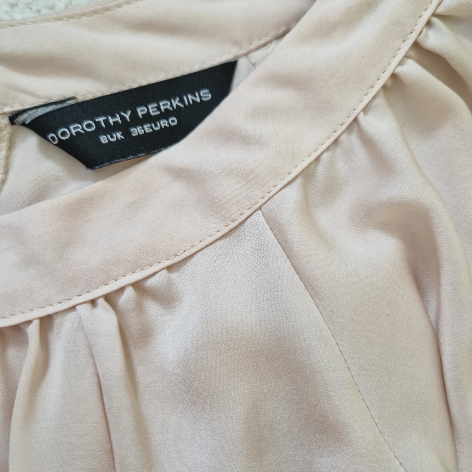 Dobrý zachovalý stav. Blúzka s balónovými rukávmi zn. Dorothy Perkins. Nepriehľadná, neelastická, zapínanie vzadu na gombík. S vreckami po stranách. Veľkosť S. Materiál: 100% polyester. Celková dĺžka 63cm.