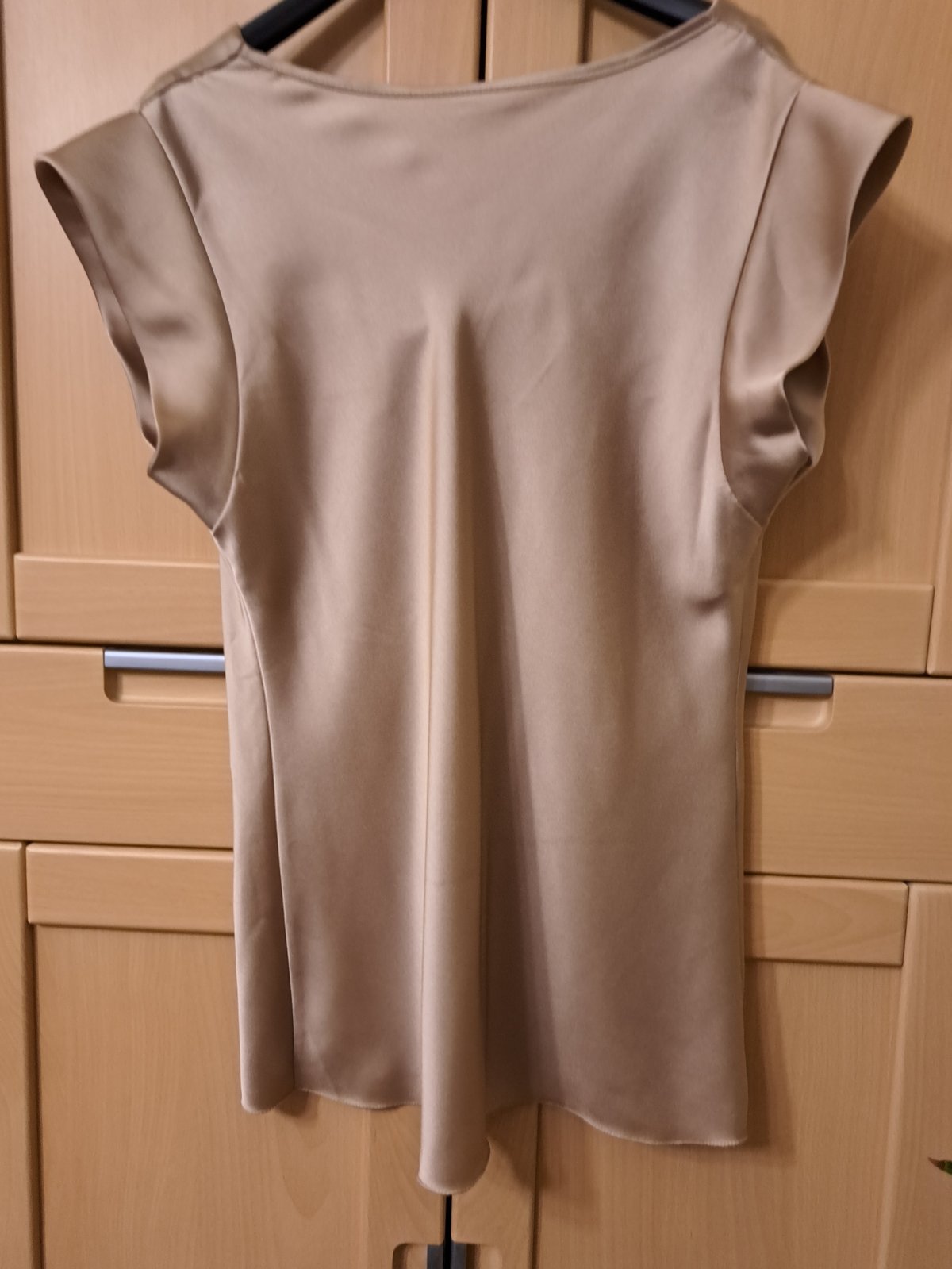 Saténová blúzka s efektom vodopád. Zlato-hneda farba. Oblečené asi 1x. Z Talianska. Pod pazuchami 51cm.