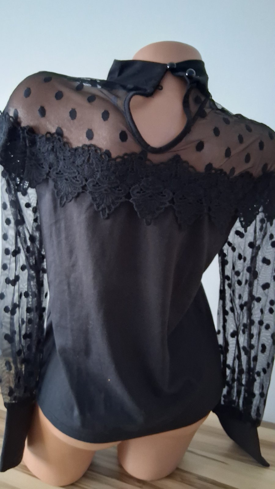 Dámska košeľa na gombičky, čierna/ priesvitná.