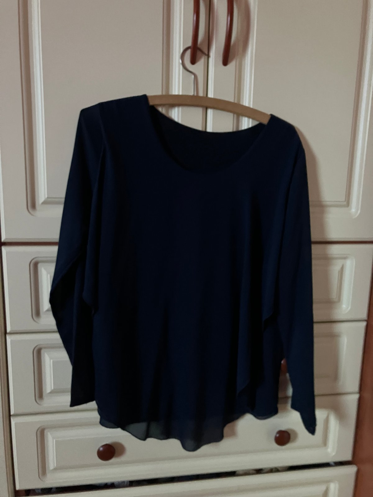 Nová blúzka, v zadu efektná mašla. Od pazuchy k pazuche 53 cm. Padavý strih.