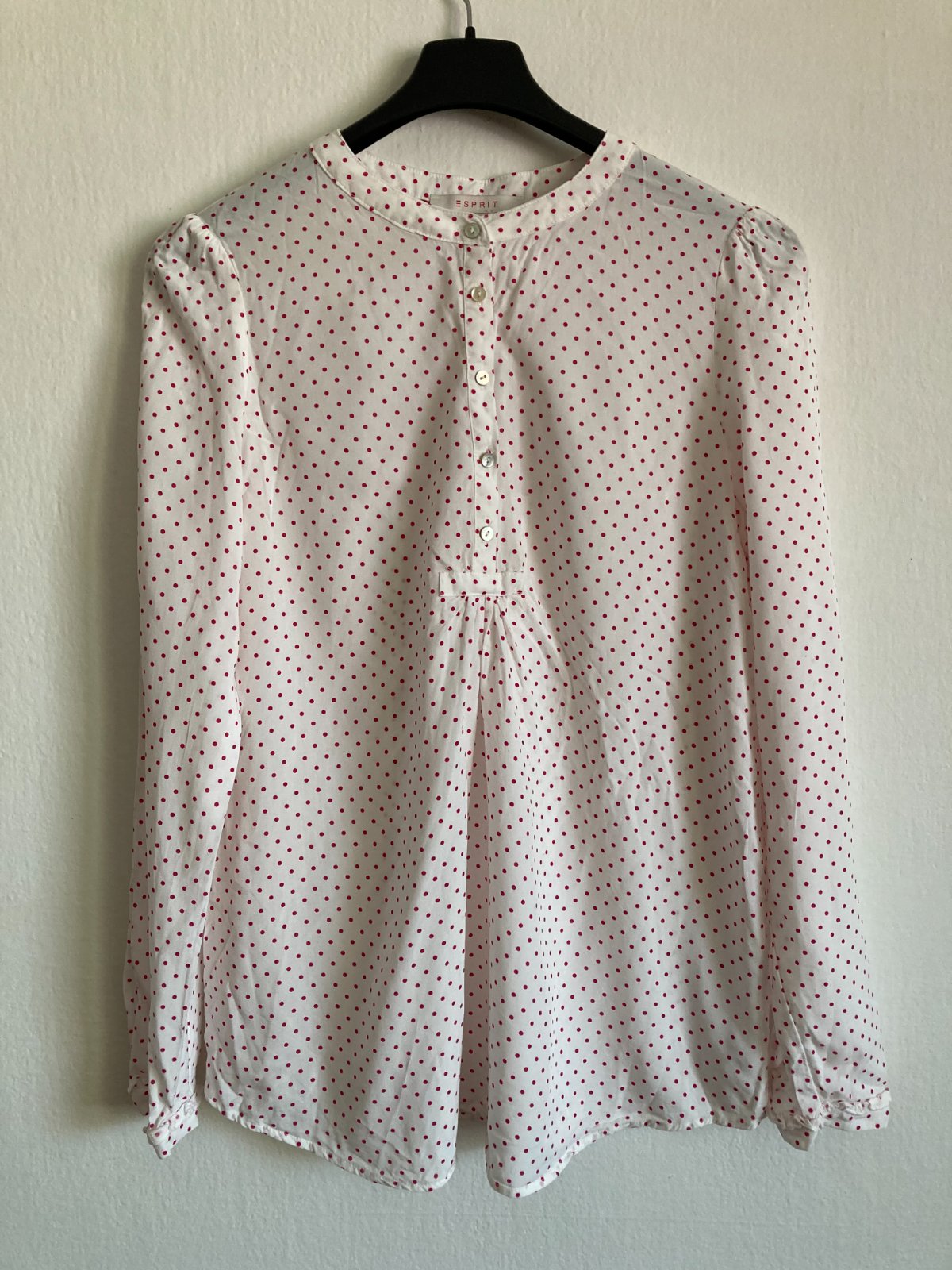 Biela blúzka s červenými bodkami, vo veľkosti S/M.