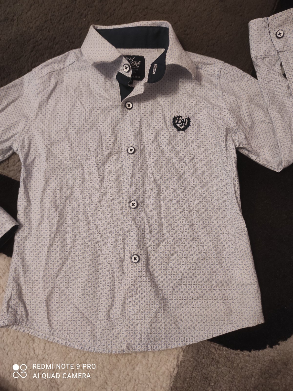 Bavlnena kosela pre chlapceka, velkost 2-3 roky, znacka M&S. Farba tmavomodra, vysite zelene dinosaury na kosele, zapinanie na dombiky. Rozmery uvedene na poslednej fotke. K tomu rifle kiki&koko ve...