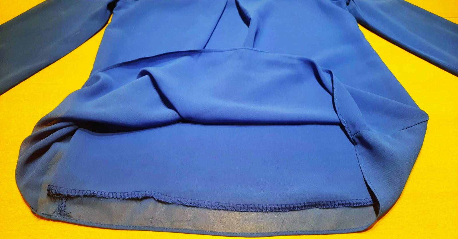 Krásna modrá farba, jemný materiál-šifón,má aj podšívku a okolo výstihu kovový šperk