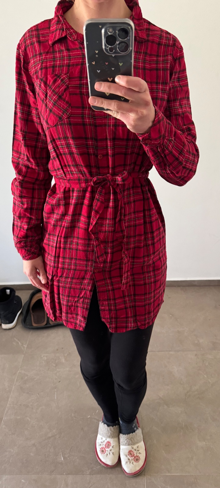Predám dámsku károvanú košeľu , červenej farby, veľkosť 38, kupovaná v Lidl. V páse sa dá pekne zviazať. Rozmery: šírka 50 cm, dĺžka 82 cm, dĺžka rukáva vonkajšia 57, vnútorná 44 cm