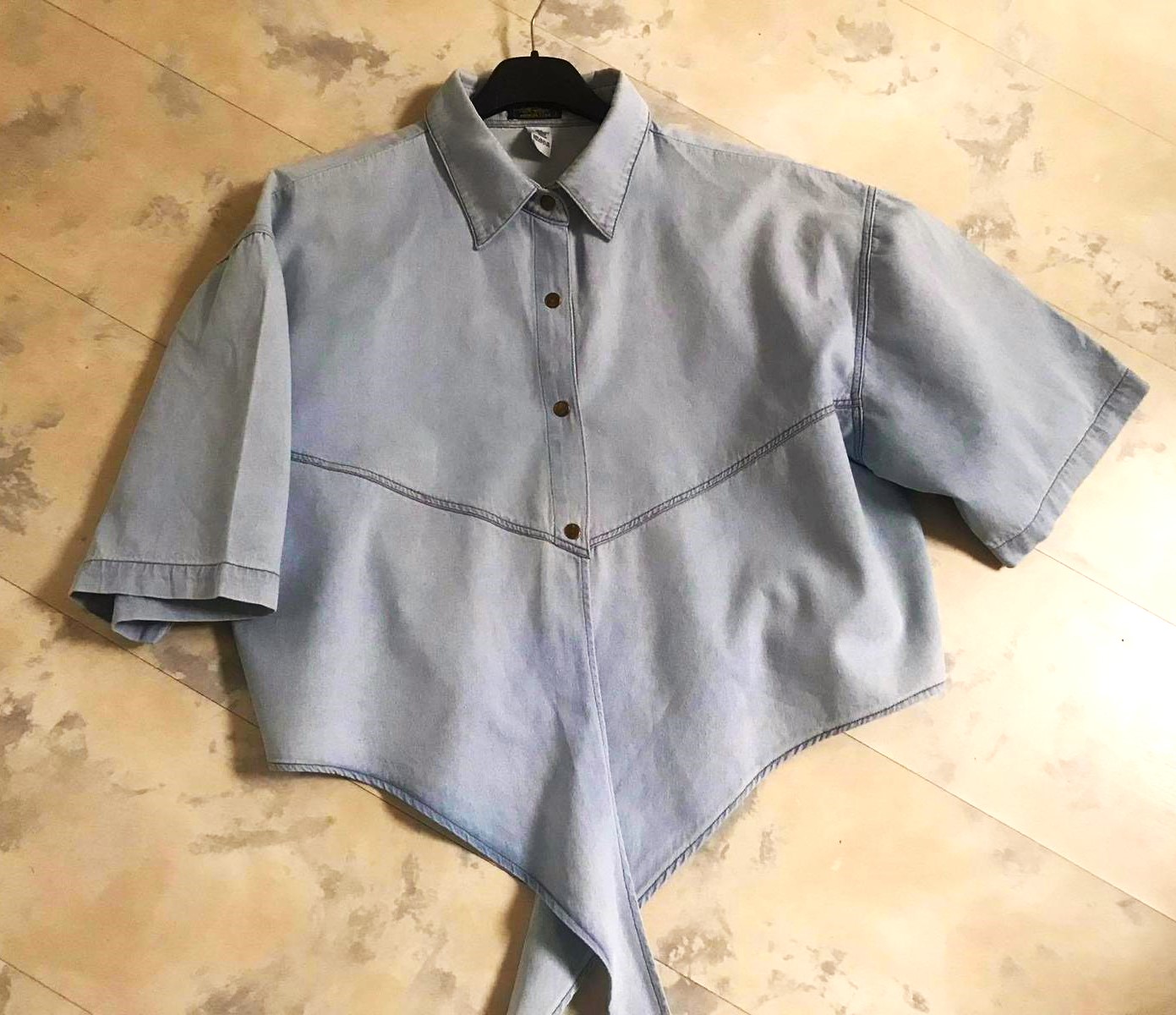 Krátka riflová košeľa na uväzovanie