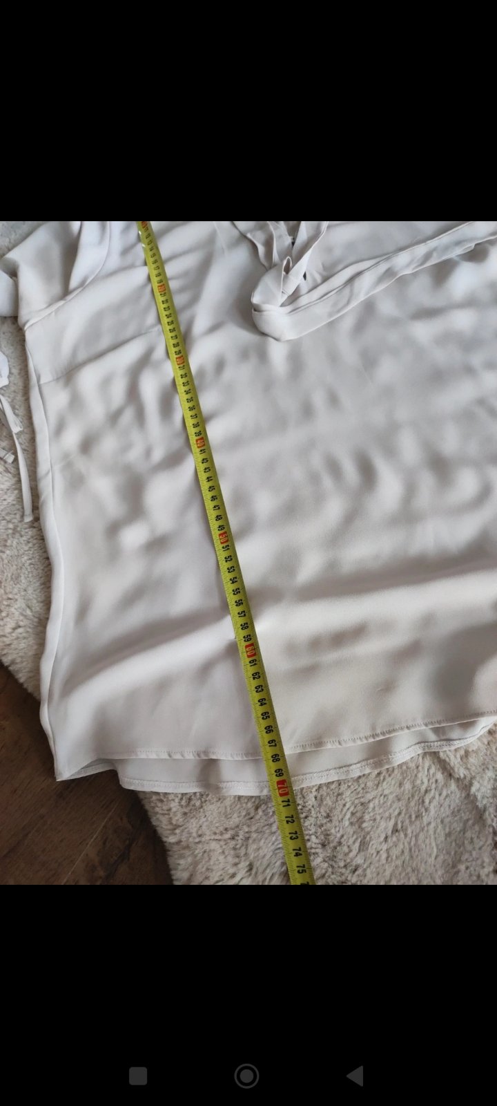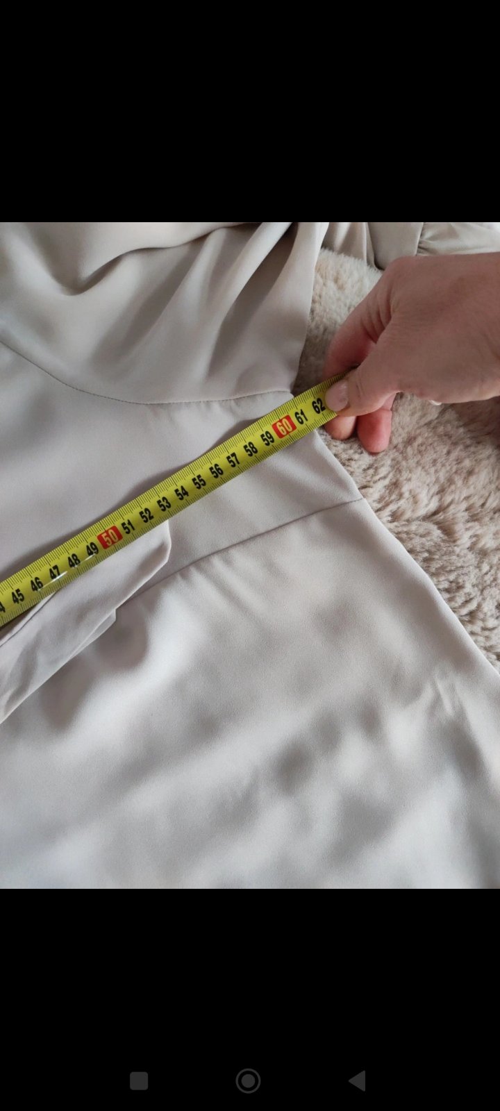 Košeľa / blúzka v nosenom, výbornom stave. Tenký, príjemný a elastický materiál. Rozmery: šírka pod pazuchami 55cm, cez pás 50cm, dĺžka 65cm, rukáv od ramena 61cm, rukáv spodná dĺžka 44cm.