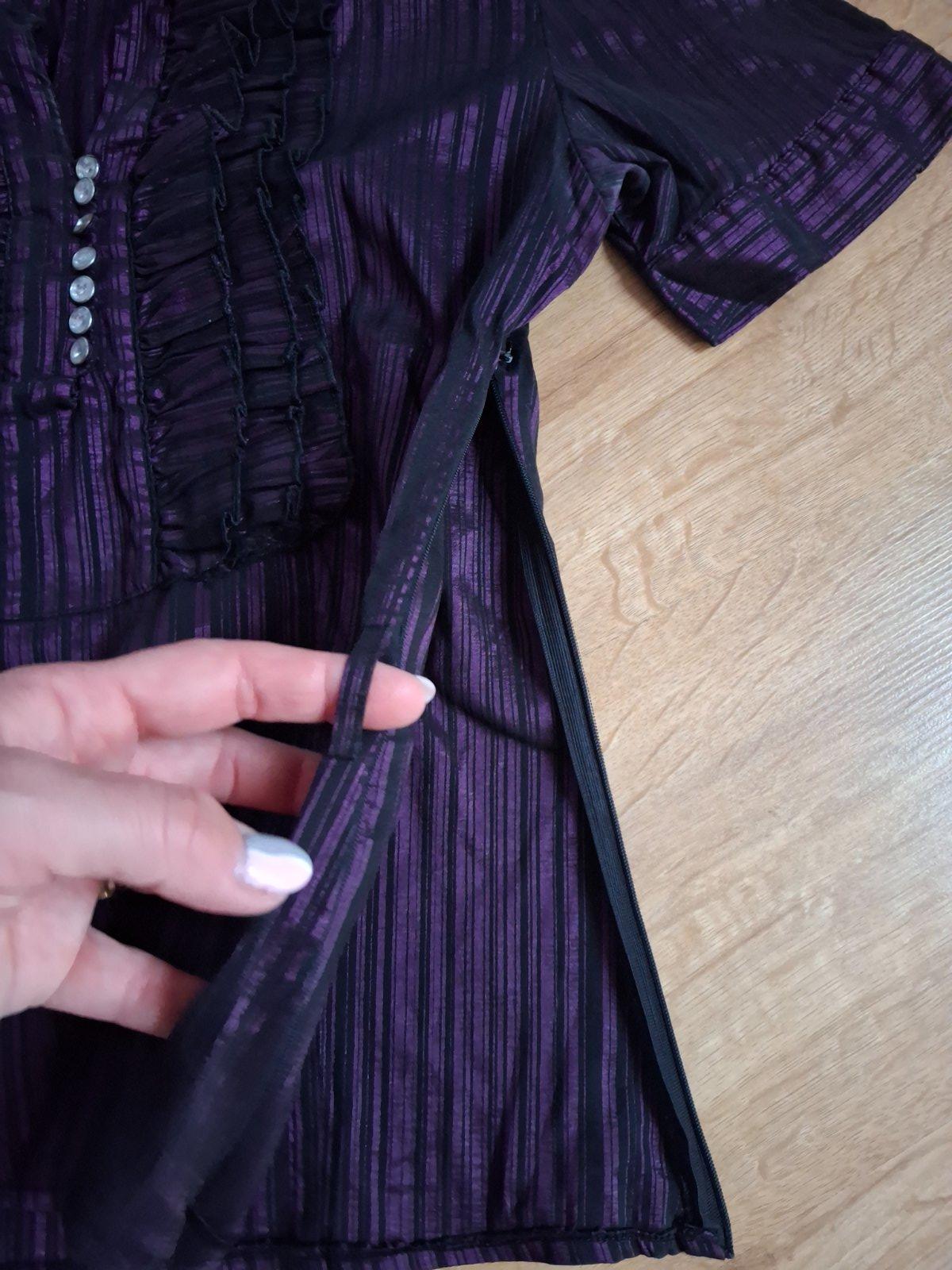 Kvalitna bluzka,fialovomodrej farby,čipka čiernej farby.100%viskoza,100%polyamid.super stav. le40 Rozmery: vel.42/44,cez prsia 2x56cm,dl 68cm. Veľkosť: 44 Značka: LINDEX Poštovné ...