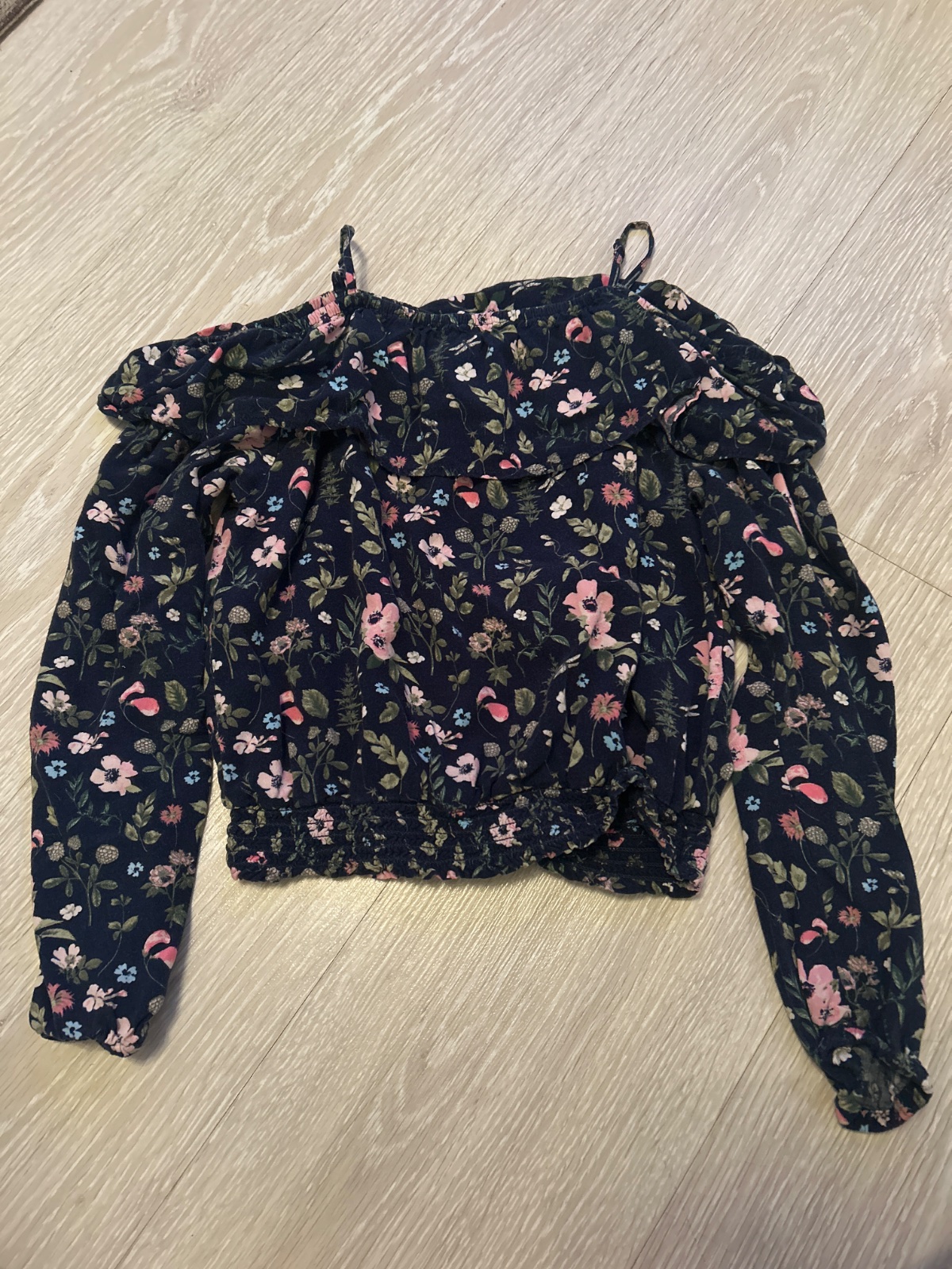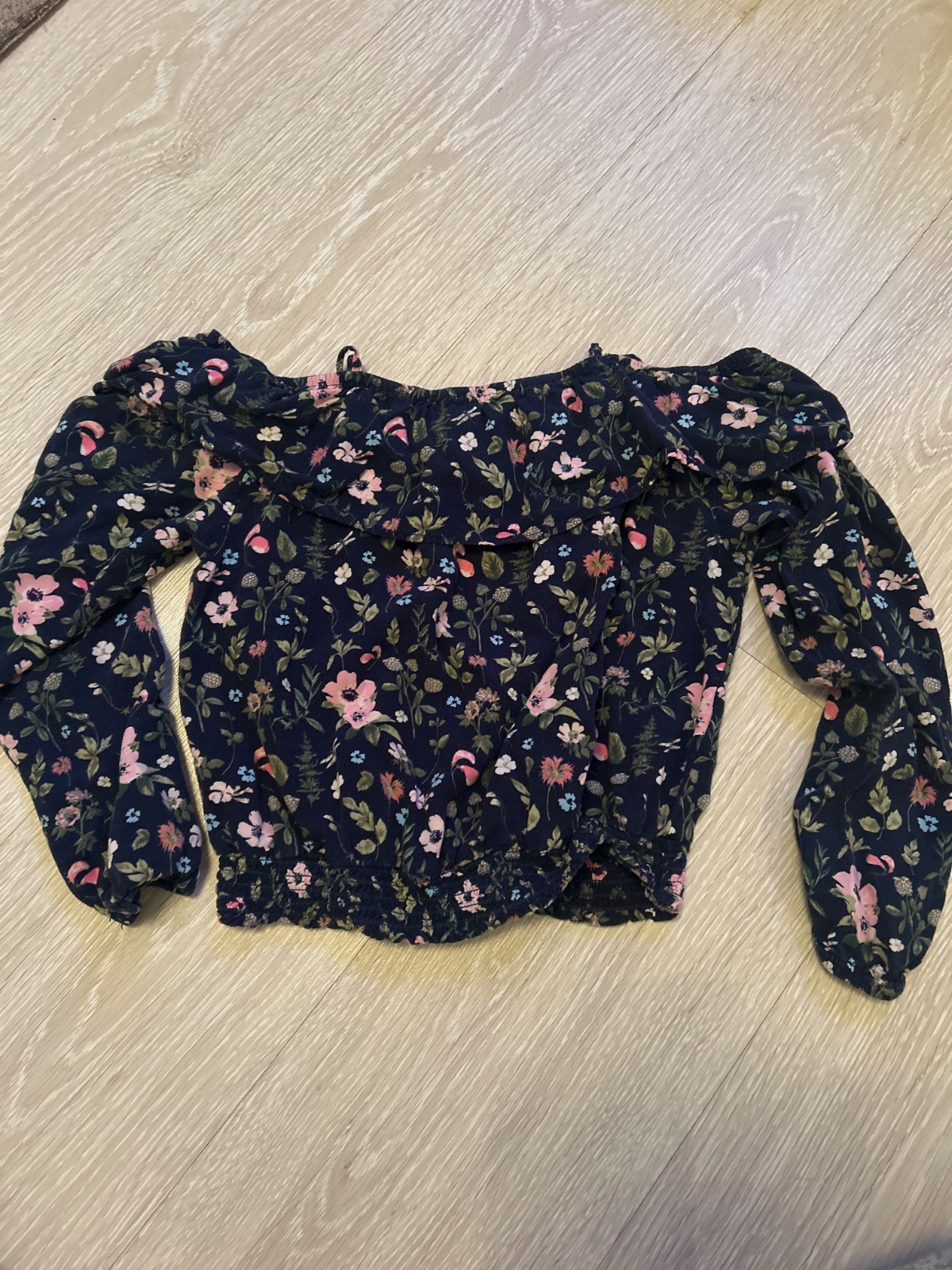 Pohodlná tričko-blúzka výstrih okolo ramien s volanom, ramienka . V pase na gumu kovy patent aj na rukávoch. Pohodlný padáky materiál