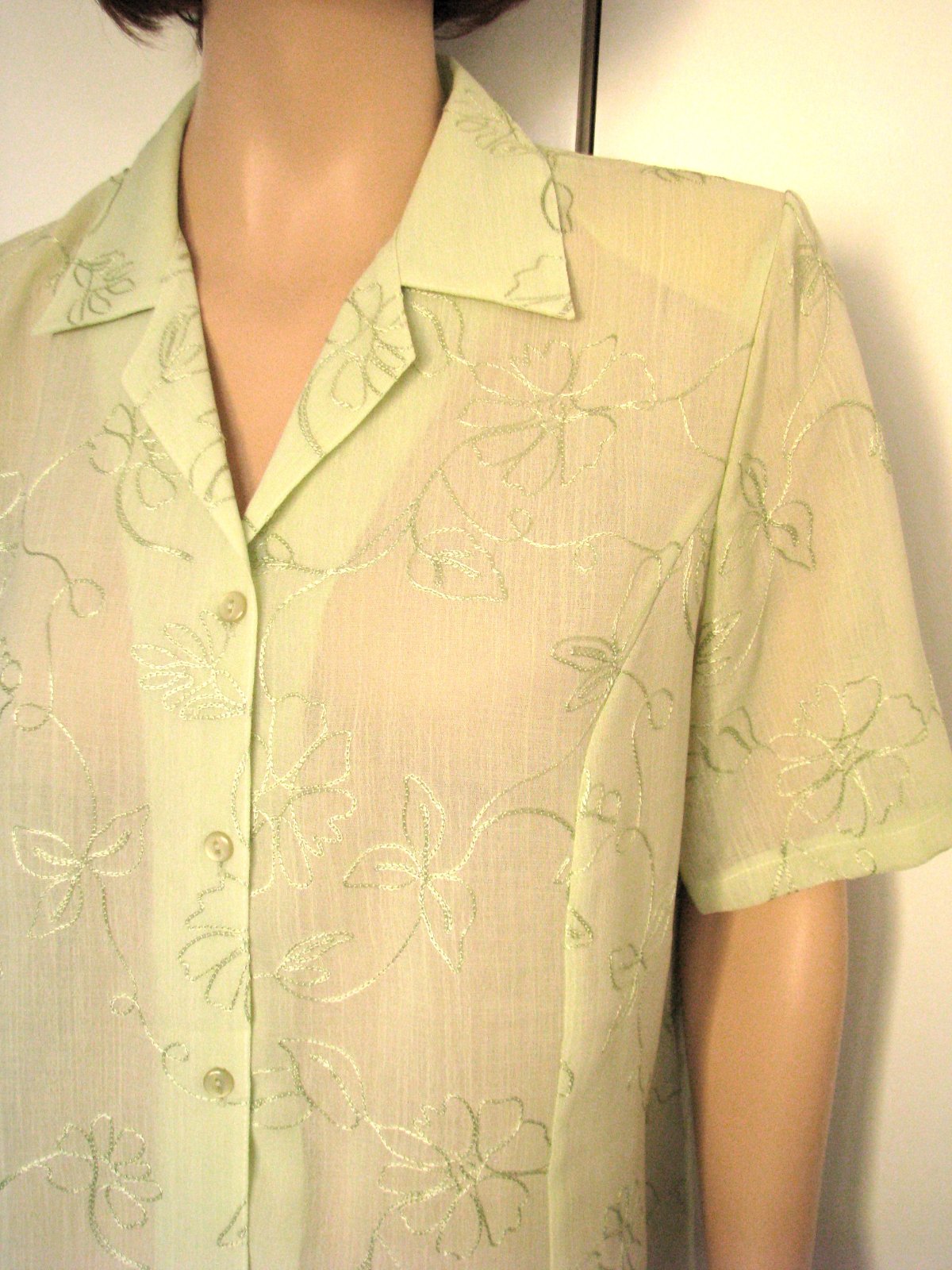 Elegantná svetlozelená vyšívaná blúzka s krátkym rukávom, skôr pre staršiu dámu - predáva moja mama. Výborne zachovalá, bez poškodení. Veľkosť odhadom XXL, možno aj XL, v prípade záujmu premeriam.