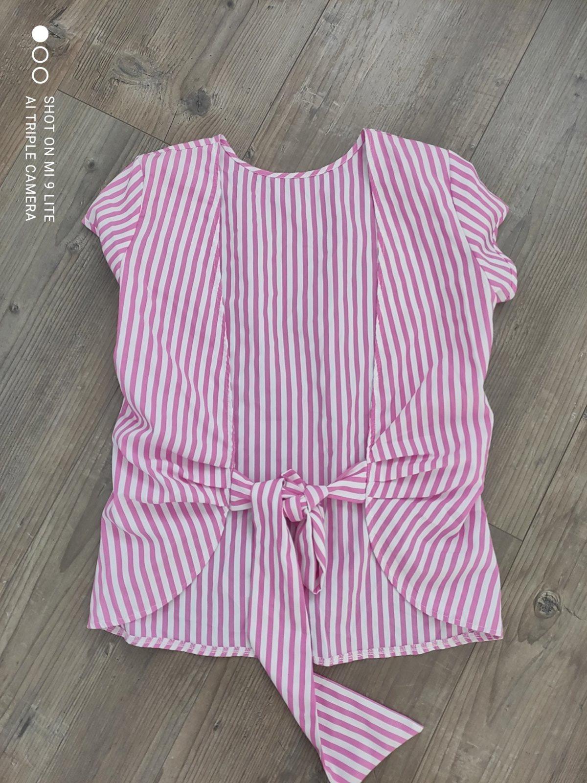 nadherna pasikova ruzovo- biela bluzka s odhalenym chrbtom s velkou maslou . kosela bola oblecena iba 1 krat a to iba par hodin , je v dokonalom stave. velkost S . bluzka vsak sadne kludne aj na M, kedze chrbat je odhaleny