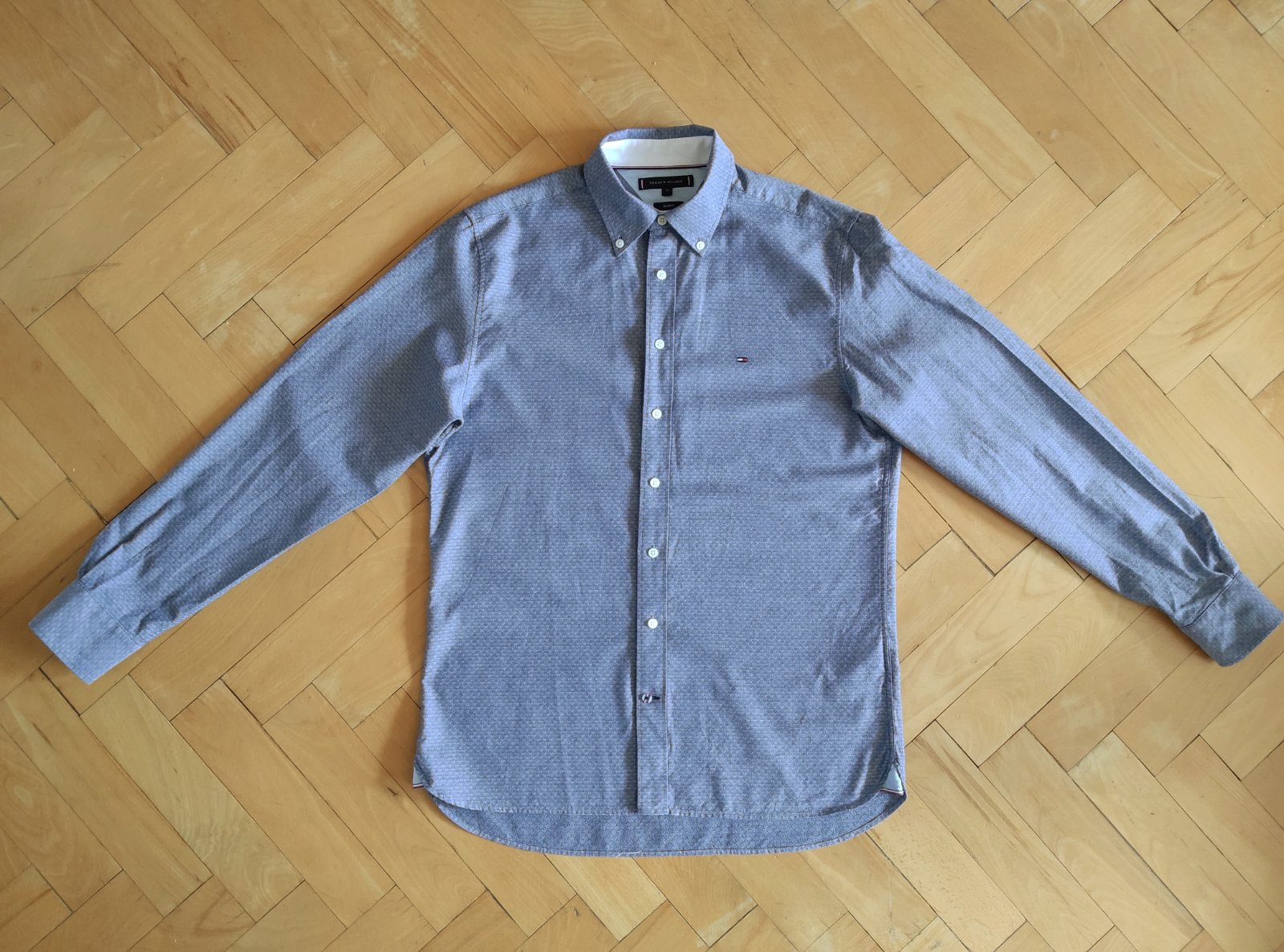 85.Tommy Hilfiger panska kosela vo velkosti M,dlzka prednej casti je 77cm,zadnej casti je 79cm,dlzka rukava od krku je 80cm a sirka v podpazusi je 58x2cm