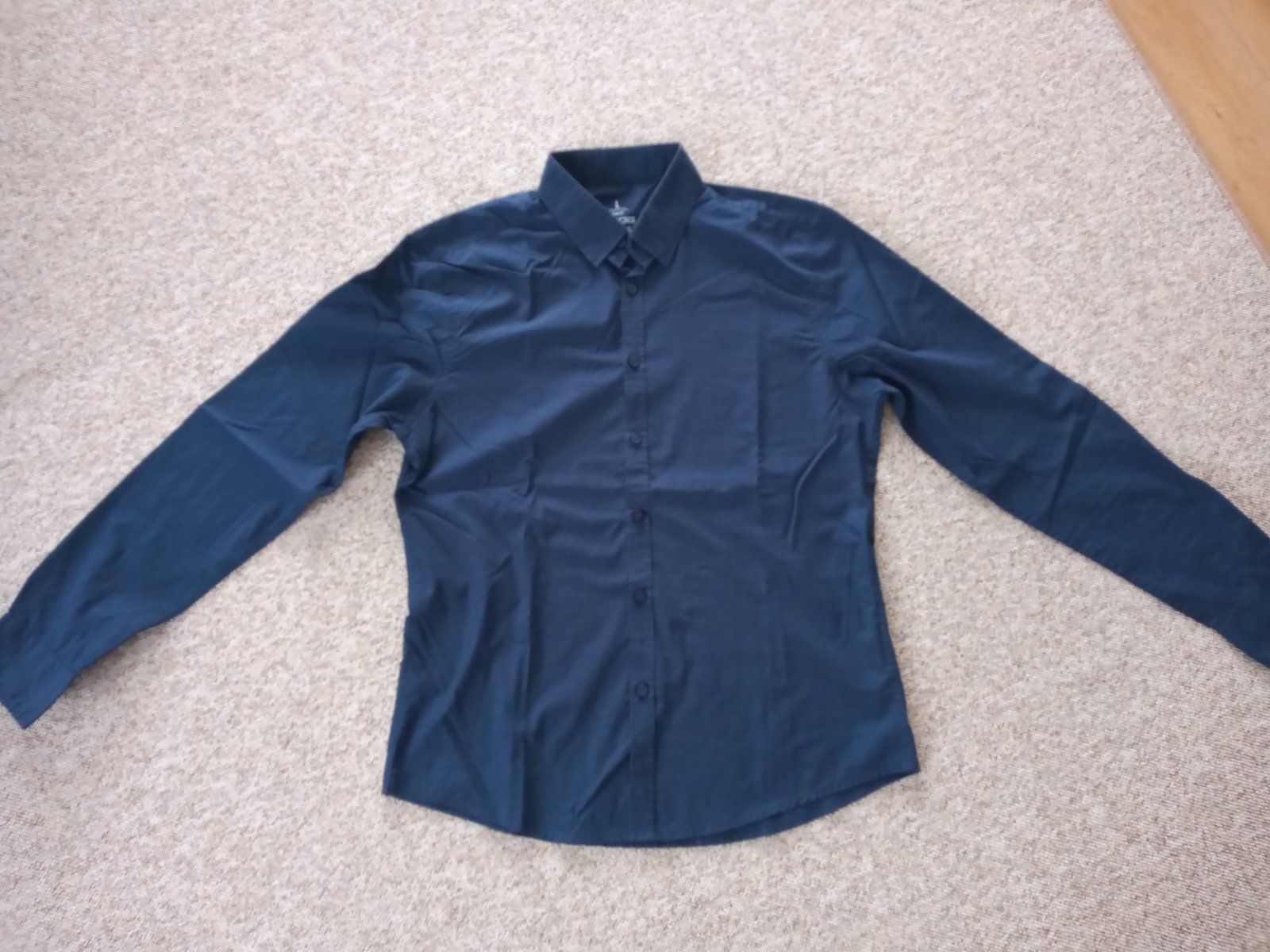 Predám len vyskúšanú kvalitnú pánsku elegantnú košeľu. Vhodná aj do obleku. Strih je slimkový. Košeľa má peknú tmavomodrú farbu s bledučko modrým vzorom. Límec a vnútorná časť patentu na rukáve sú ...