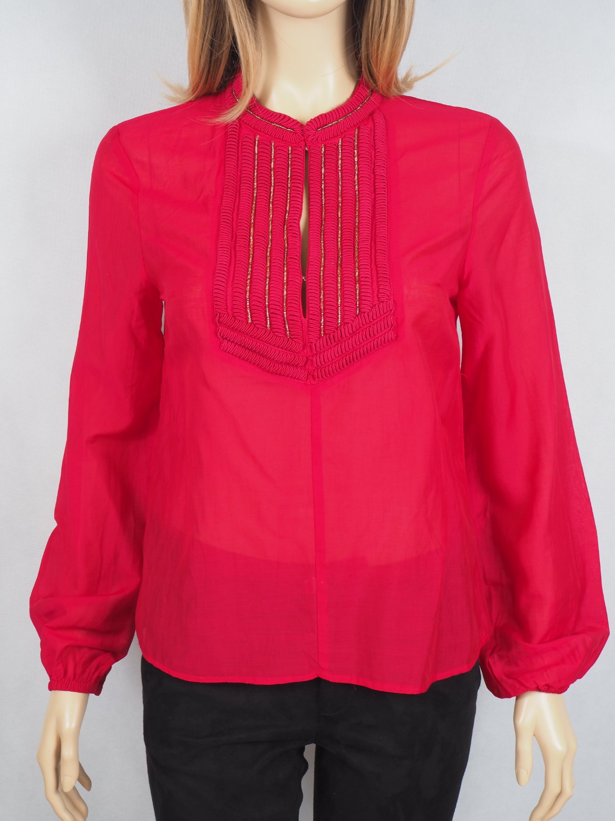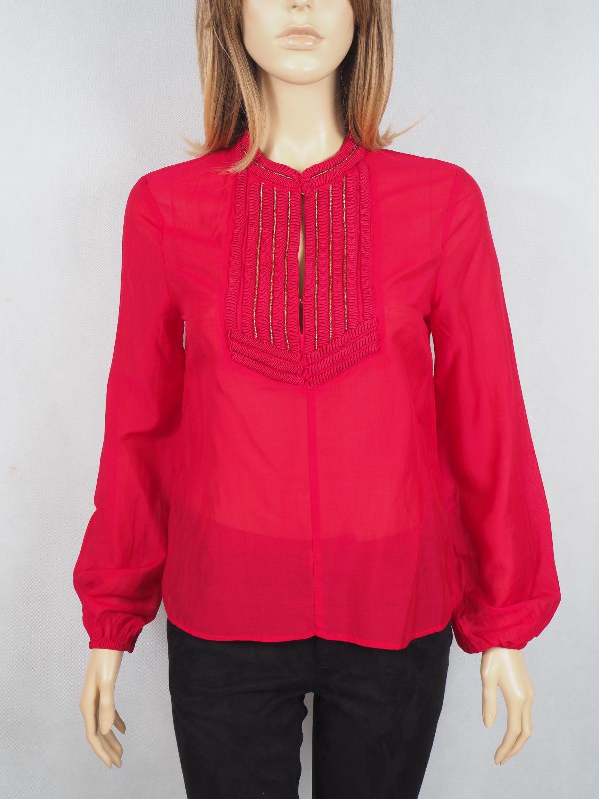 Kvalitná červenobordová blúzka, s efektným zdobeným výstrihom, materiál 73% lyocel, 27% polyester, super stav.