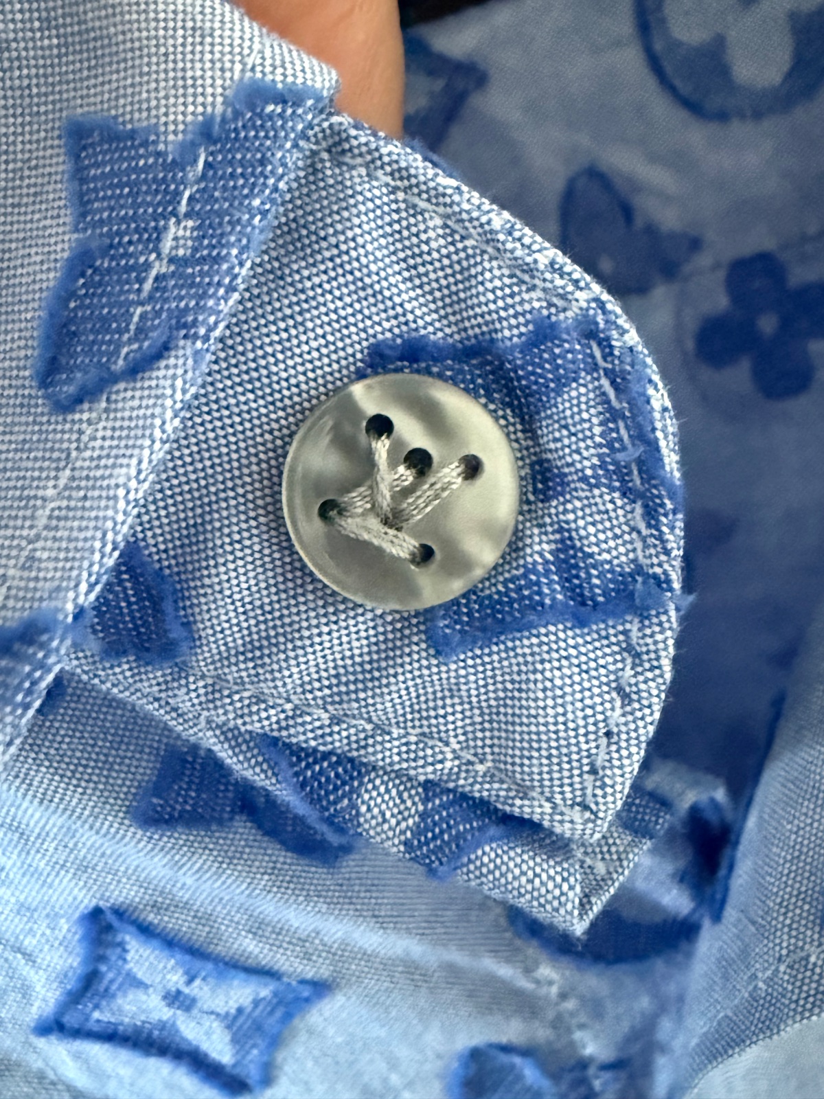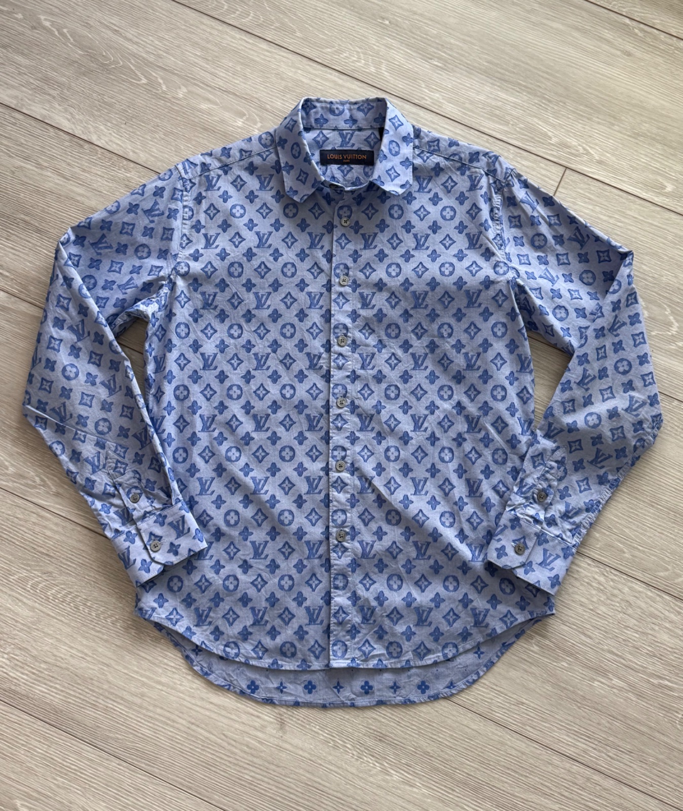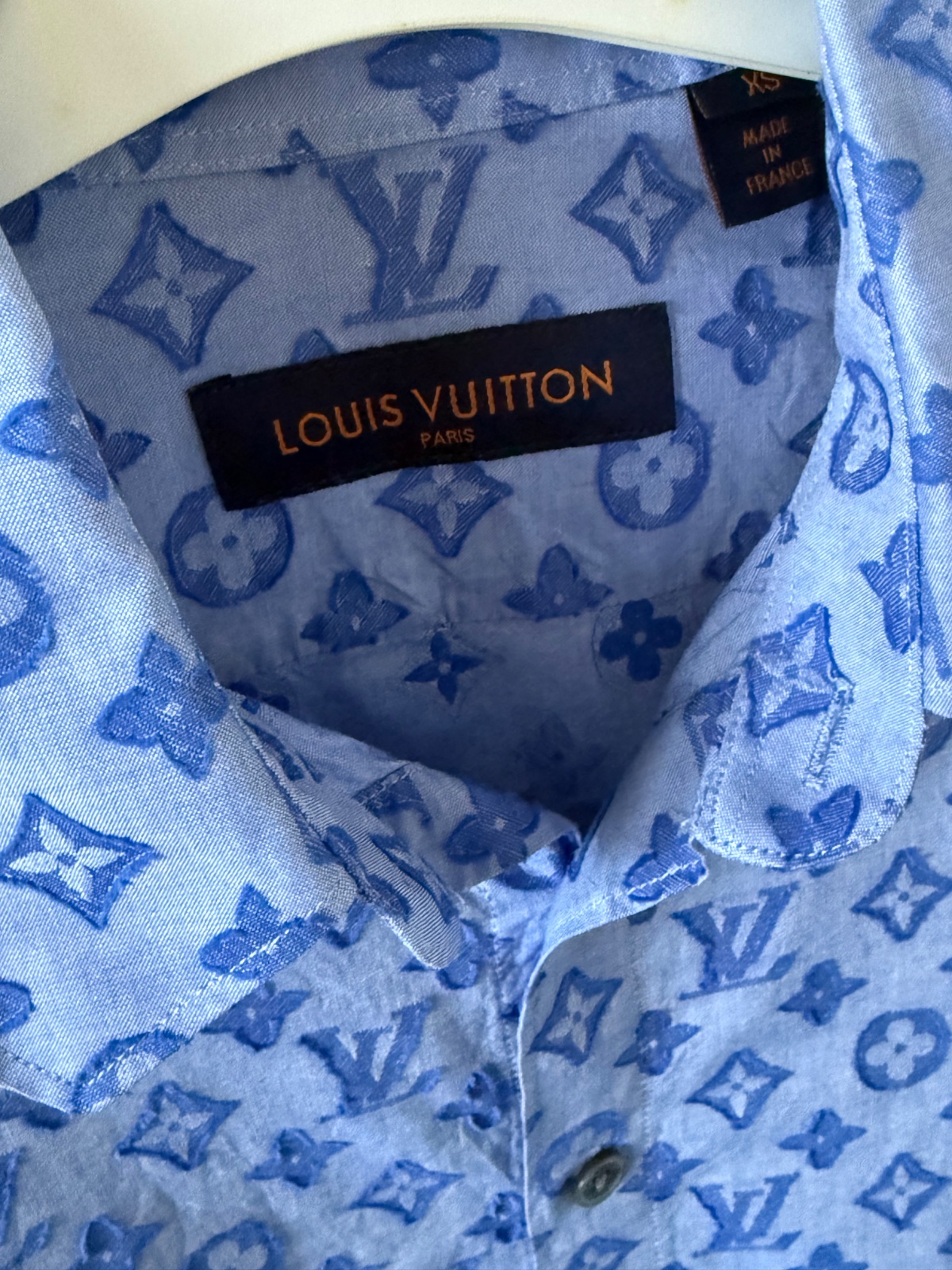 Krásna modrá košeľa Louis Vuitton Monogram. Za mna unisex. Veľkosť pánska XS, dámska S-M. Velmi dobrý nosený stav, bez poškodenia. Miery: šírka 55cm, dĺžka predný diel 70 cm, zadný diel 74 cm.