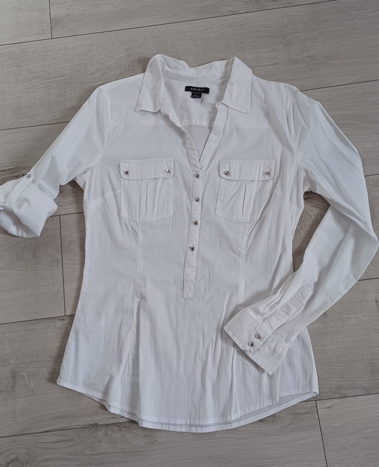 Predám dámsku košelu vel.L zn.Amisu dlžka:65cm ,šírka cez prsia 47cm látka elastická super stav.