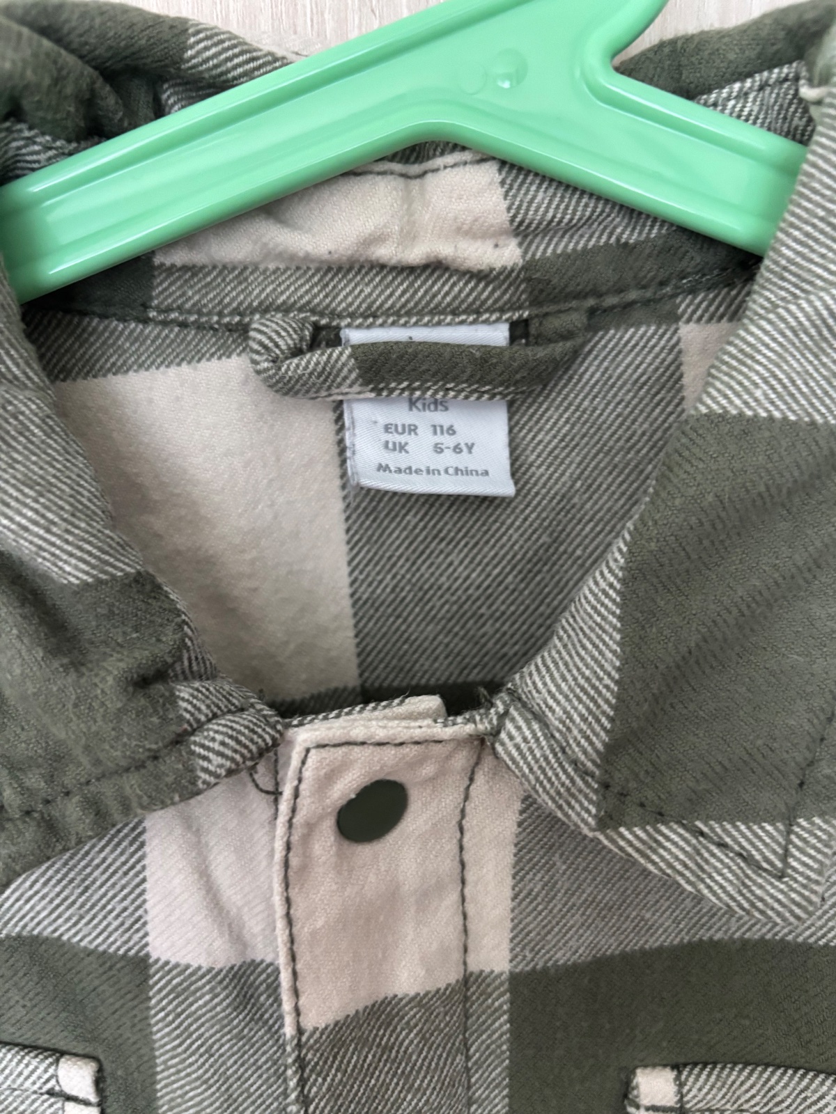 Veľmi pekná, frajerská košeľa. Zn. LINDEX, veľkosť 116. Stav je super až na malé škvrnky na bielej časti rukávov /viď. foto/. Malo by ísť vyprať, neskúšala som špeciálne. Pri bežnom nosení nie sú v...