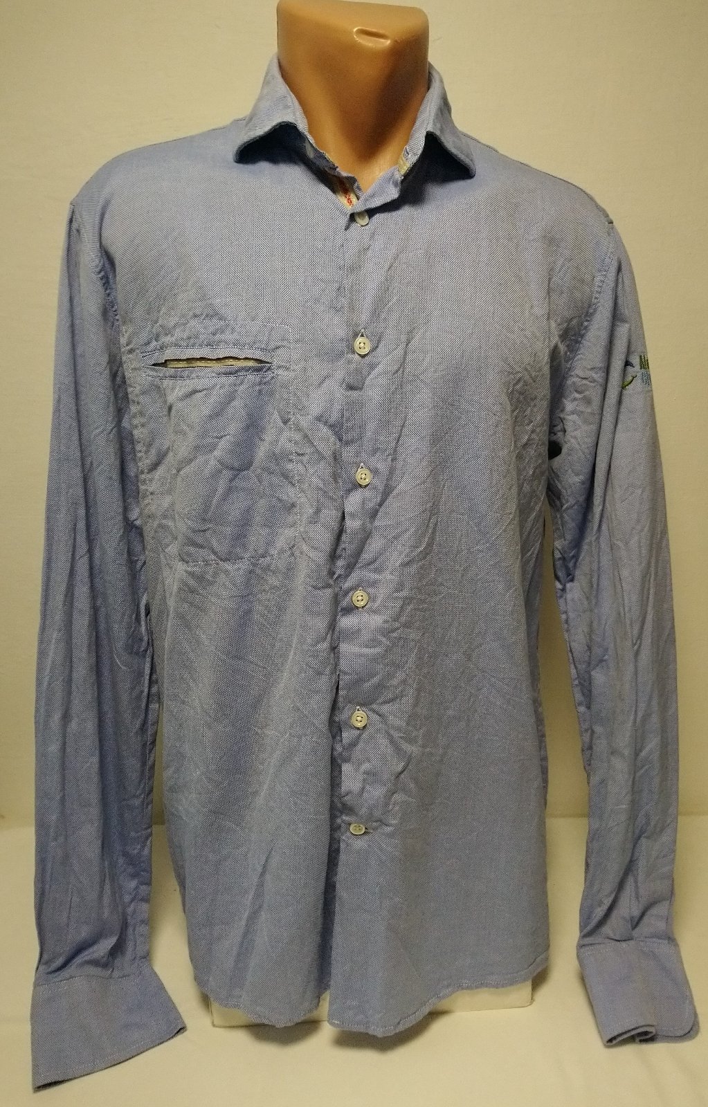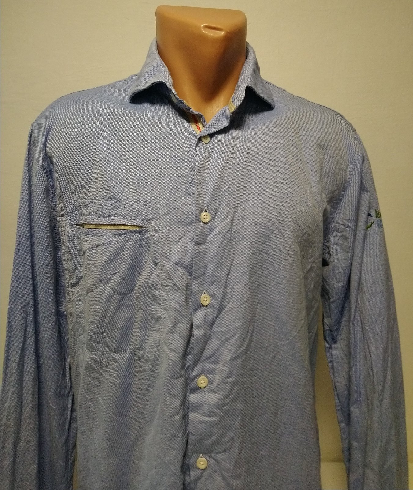 pánska modro biela košeľa, zapínanie na gombíky, vrecko,