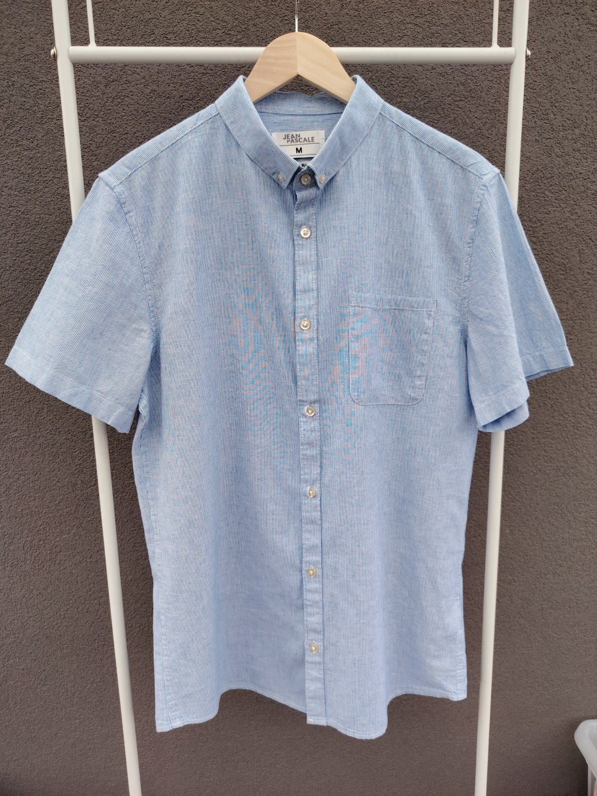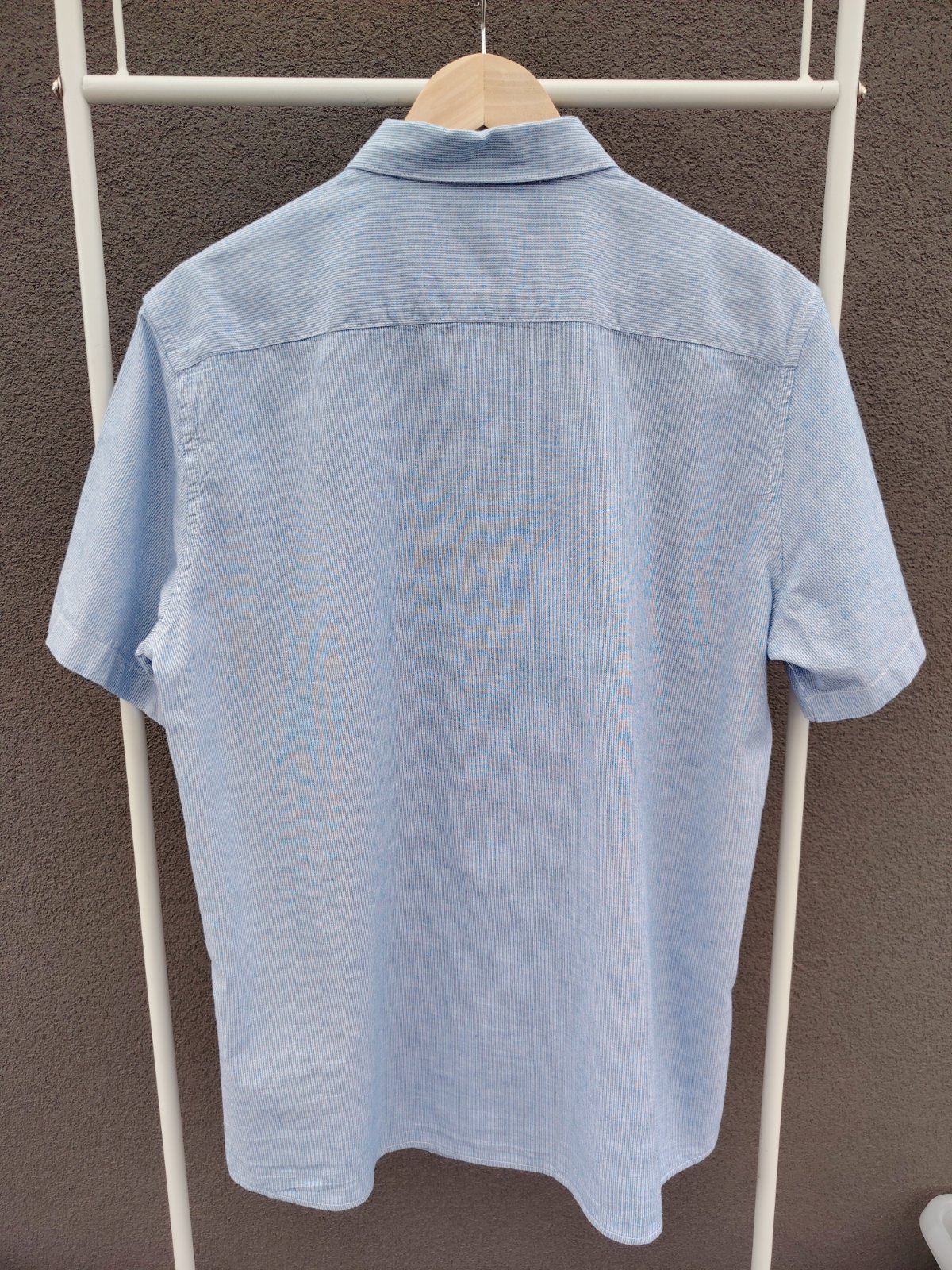- košeľa je nová bez visačky, manžel si ju kúpil sám bez skúšania, dal dole visačky a pri skúšaní zistil, že mu je široká 🙈