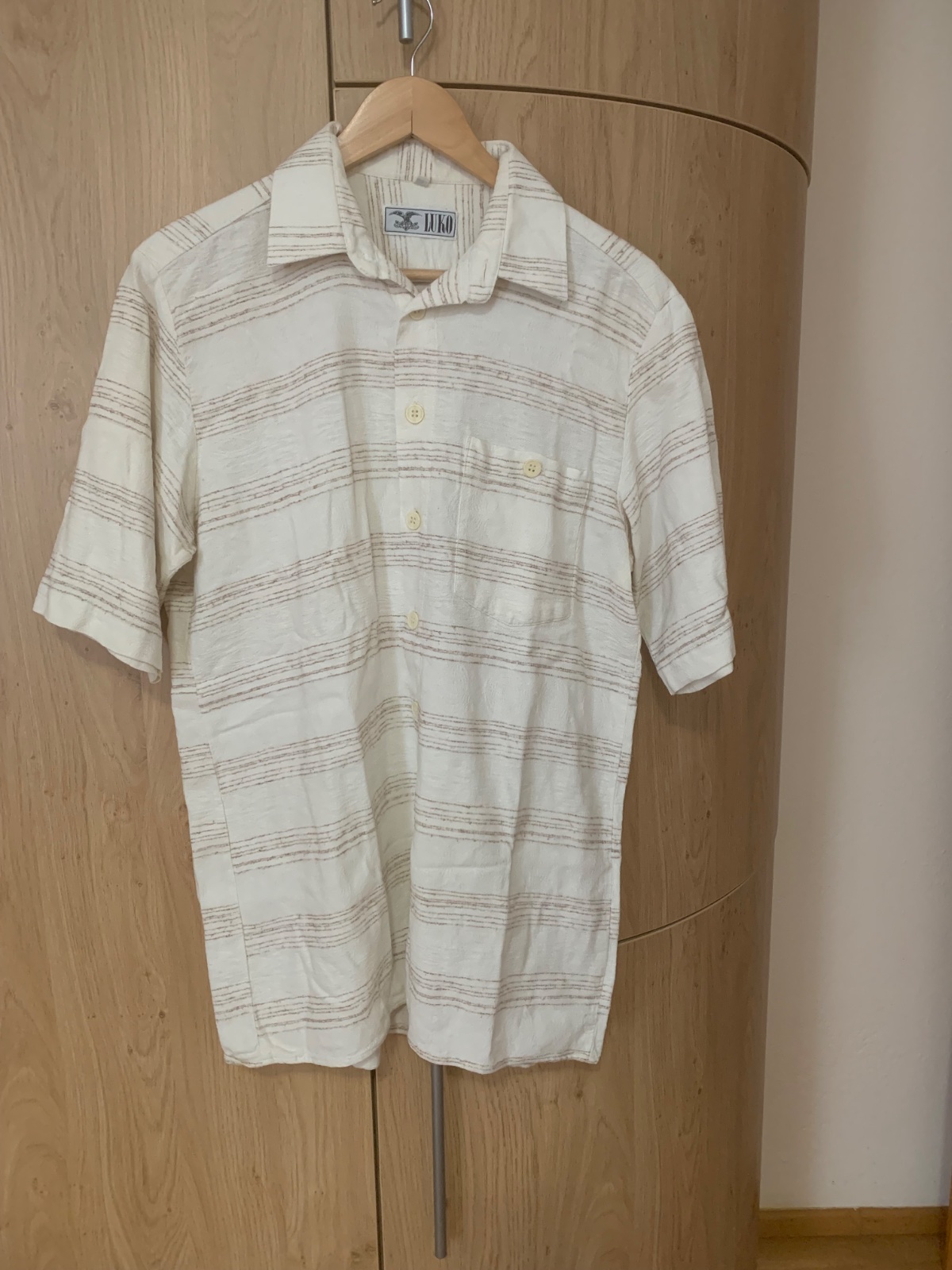 Pohodlná košeľa béžová, oblečená pár krat Veľkosť - L 100% bavlna dĺžka - 79cm, šírka - 63x2cm, dl. rukáva od krku- 47cm