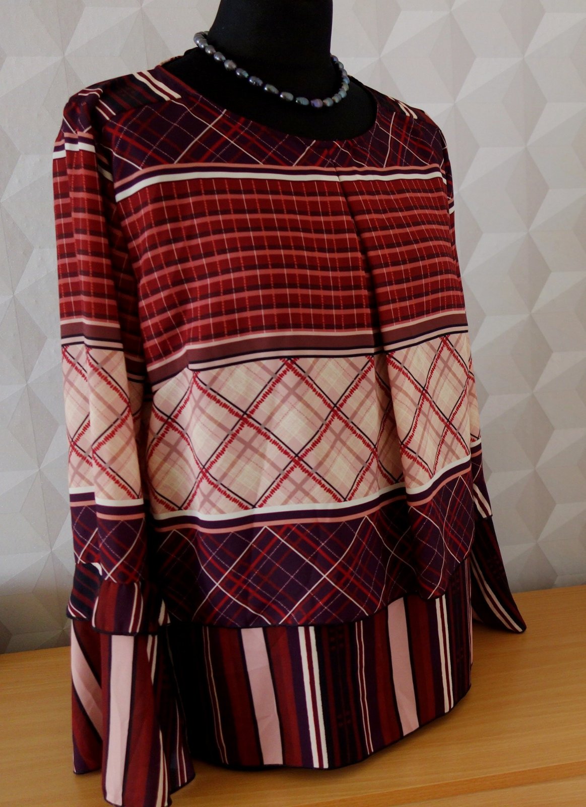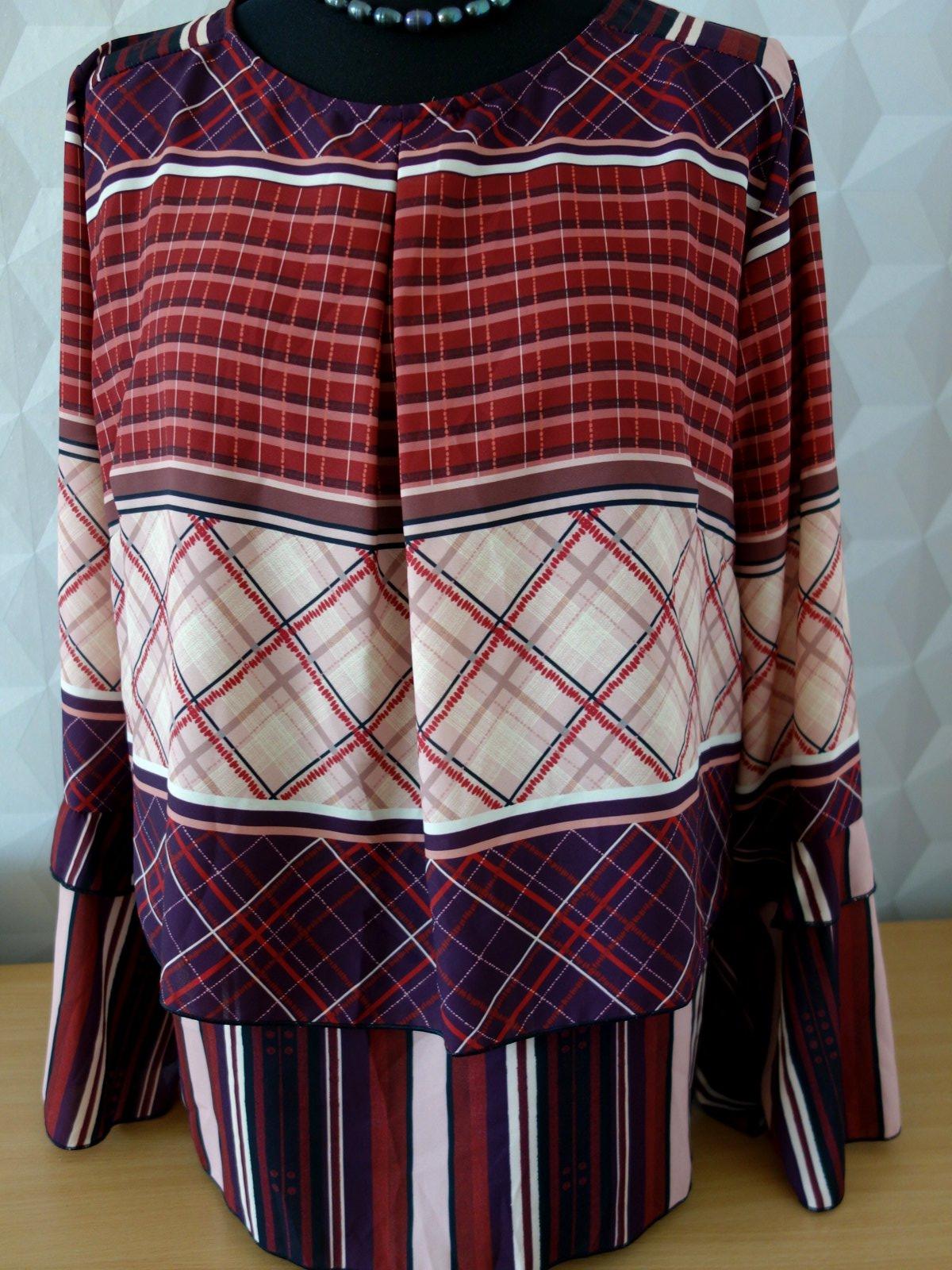 Dámska dvojvrstvová blúzka s dlhým rukávom, EXSY Italy, veľ.XL, rozmery: dlžk a67cm, pod pazuchami 2x56cm, rukáv od krku 68, od pleca 60 a od pazuchy 44cm.