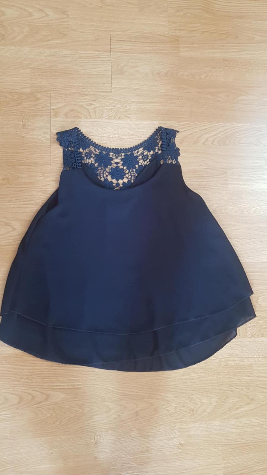 pekná blúzka s madeirou, má dve vrstvy, strih do tvaru písmena A, materiál polyester, viskóza, elastan. Je ako nová.