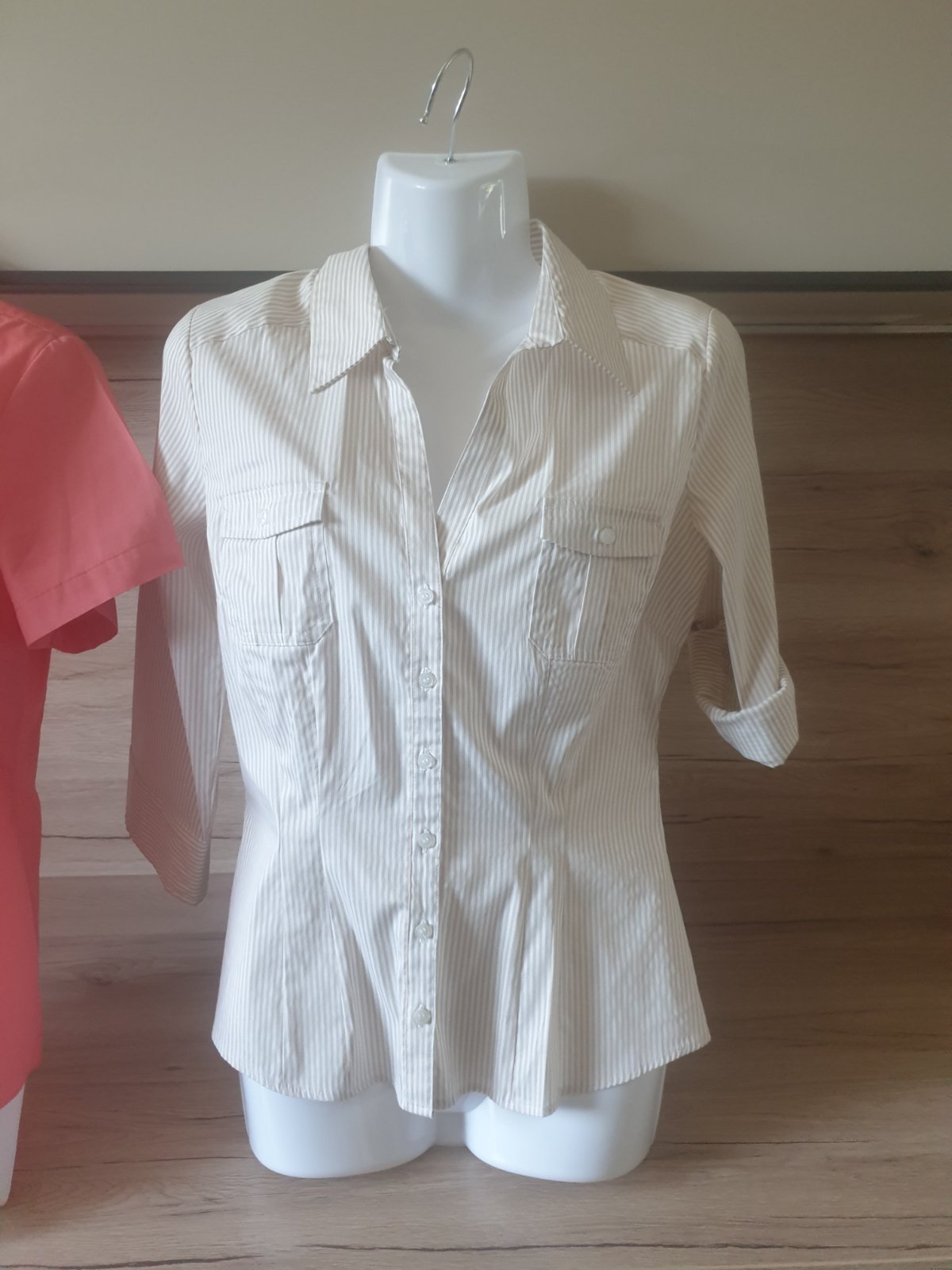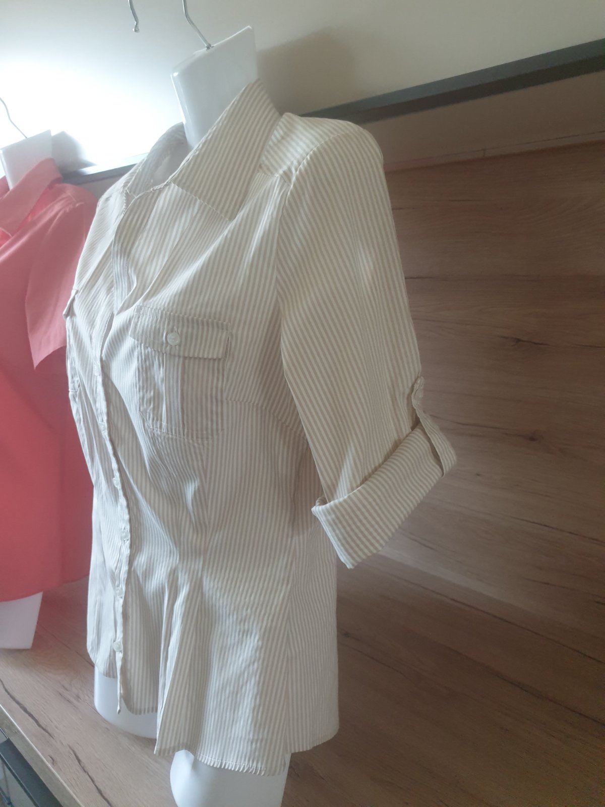 Košeľa vo veľmi dobrom inosenom stave. 100% bavlna, príjemný materiál. Pekne ukáže na postave, regulovateľný obvod okolo pása vzadu šnúrkou na zaväzovanie. + poštovné