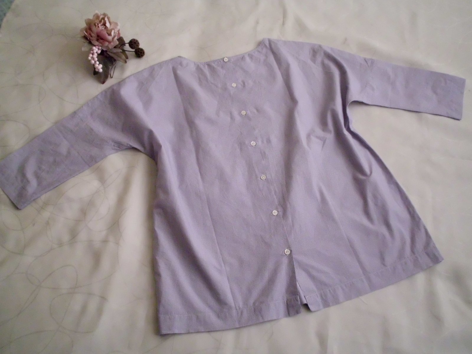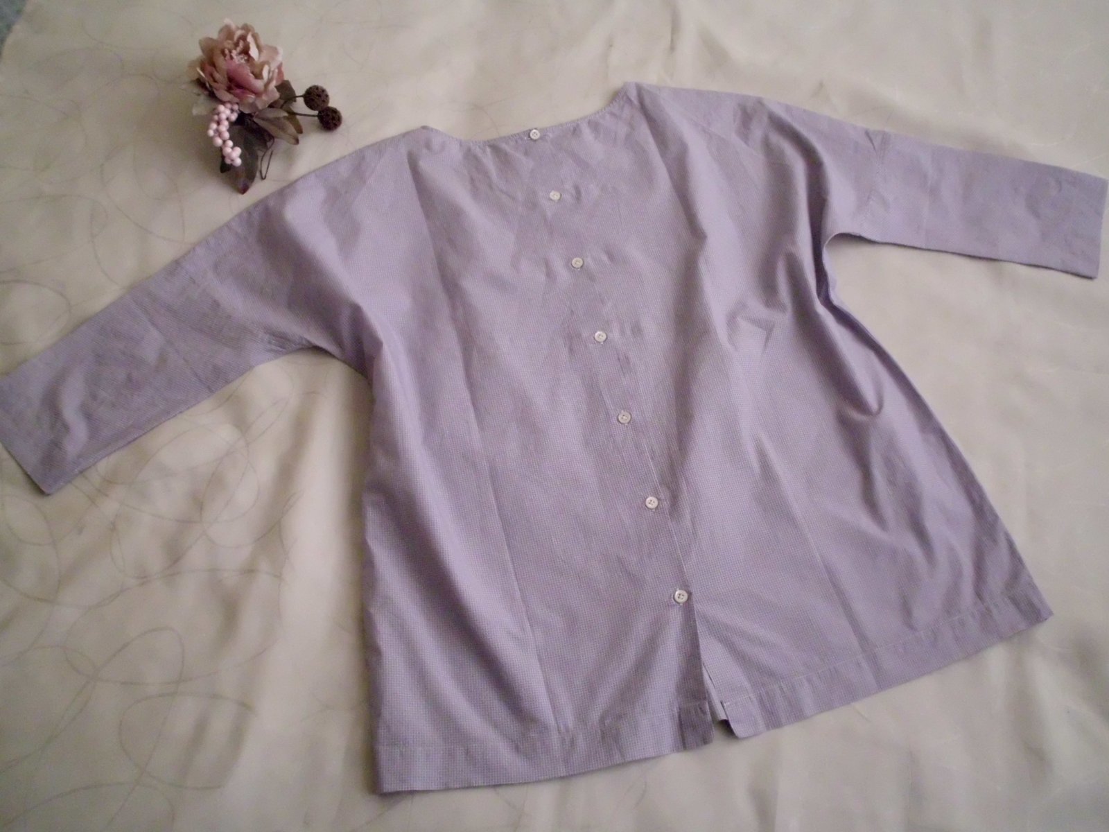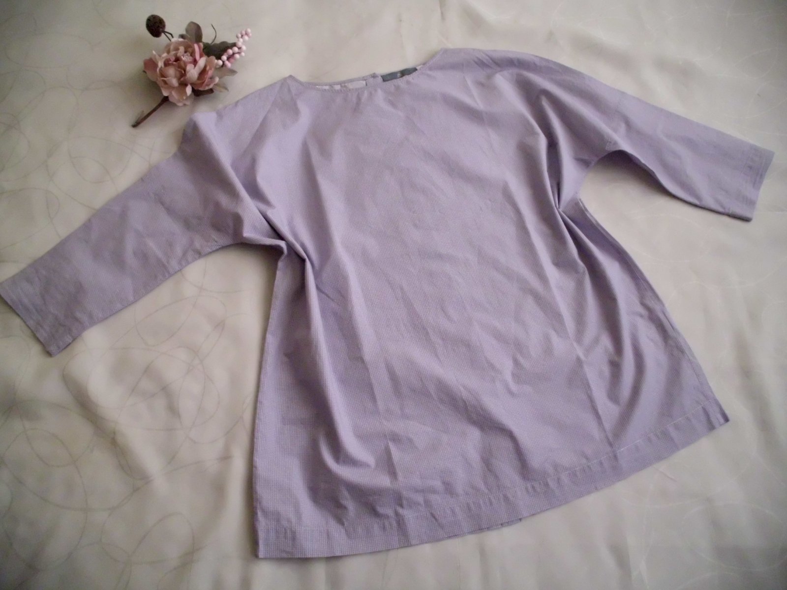 Predám dámsku košelu-blúzku talianskej značky Aglini, vel. M-40 ,vzadu gombíky, šírka 58 cm, spodok šírka 54 cm, dĺžka 62 cm, rukáv od krku 50 cm, veľmi príjemný bavlna materiál, jemne fialová farba s veľmi malinkou kockou , raz oblečená, 100% stav