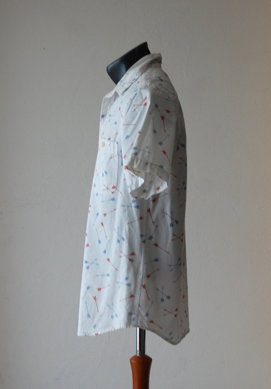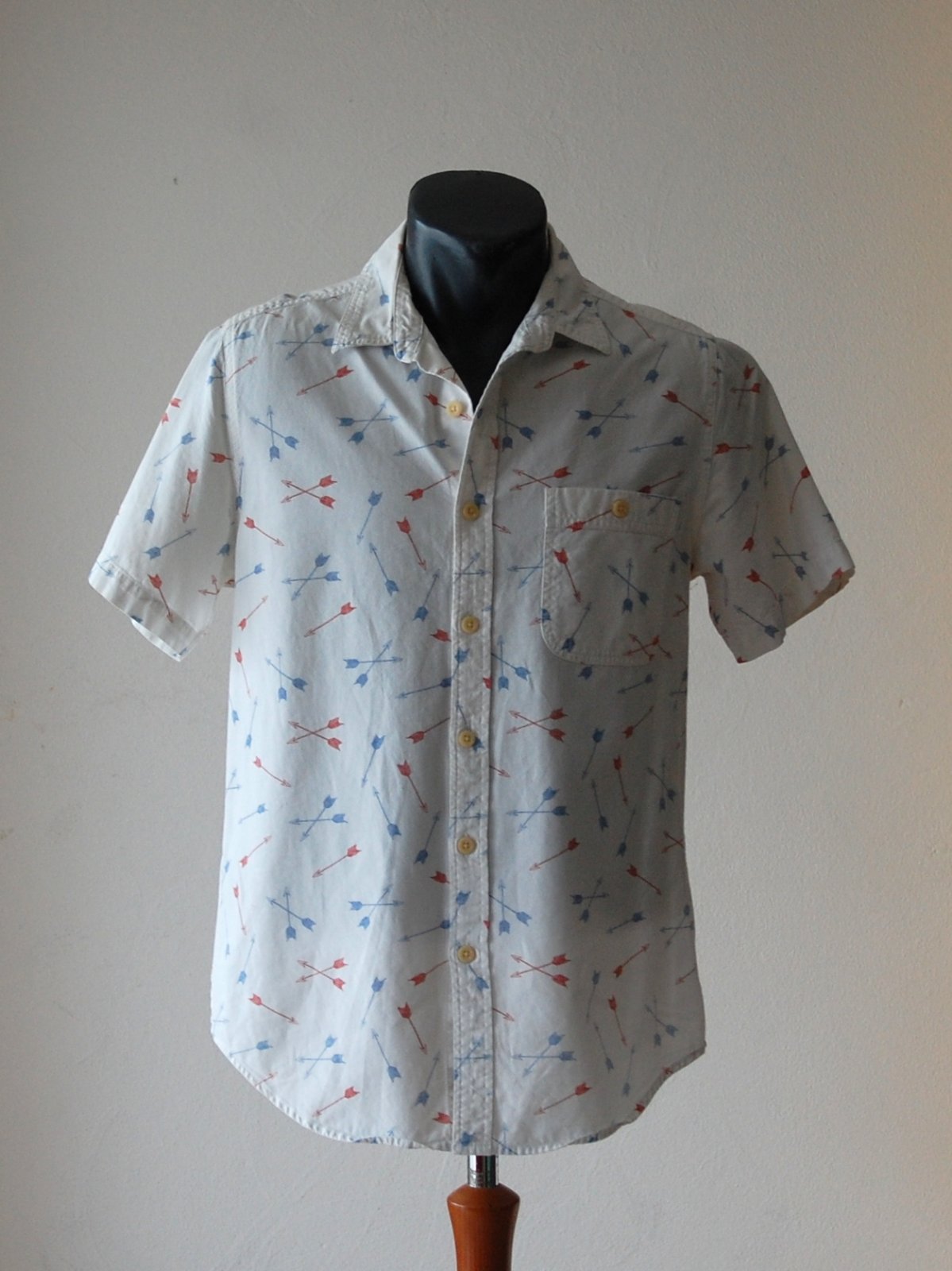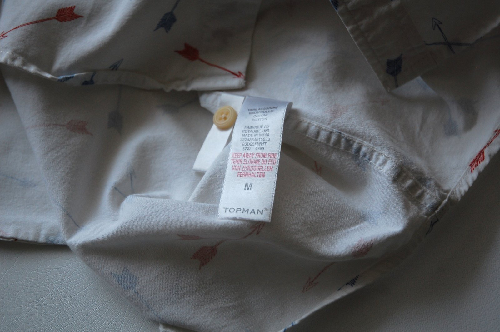 Predám štýlovú pánsku košeľu s krátkym rukávom značky Topman. Košeľa má svetlý podklad s originálnou celoplošnou potlačou prekrížených šípov v červenej a modrej farbe. Ideálna na leto, festivaly alebo bežné nosenie k džínsom či šortkám. Košeľa je vo veľmi zachovalom stave, farby sú jasné. Jedinou chybičkou je mierne „zajedený“ golier z vnútornej strany (zohľadnené v cene), pri nosení to nie je vidieť.