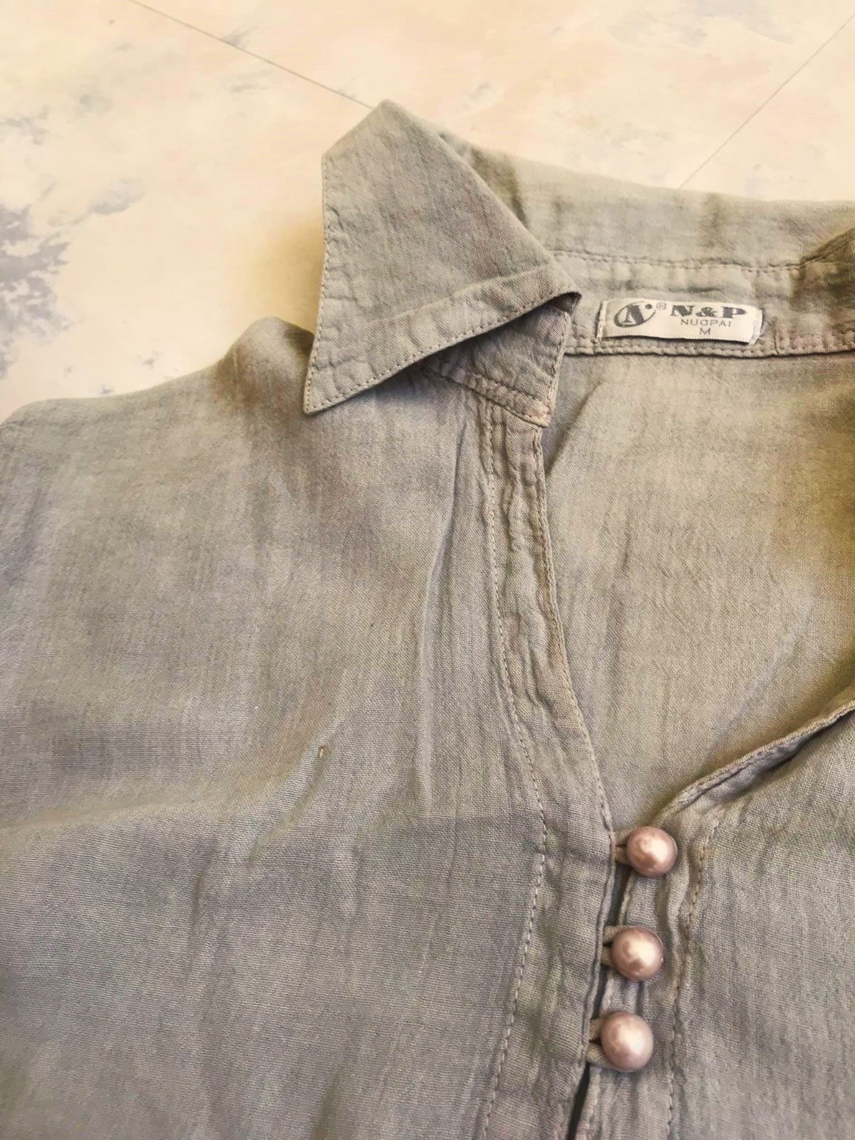 kvalitná zaujímavá tieňovaná bavlnená košeľa z jemnej a jemne priesvitnej indickej bavlny,ľahúčka,raz opraná,super na horúce leto....nosí sa voľnejšia,krásne padá,vhodná aj na M veľkosť