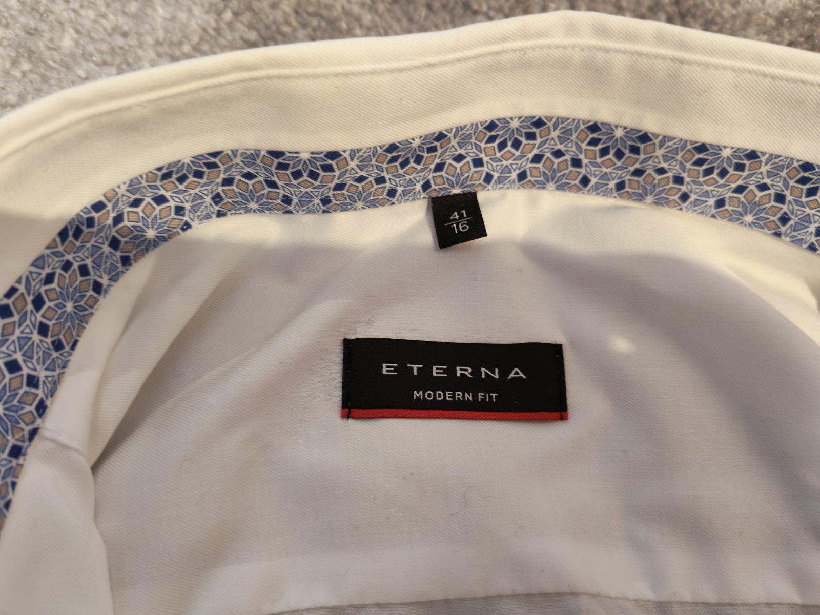 Predám úplne novú nenosenu, len opratu kvalitnú košeľu značky Eterna kupovanu v Londýne. Je v absolútne top stave. Veľkosť 16/41. V prípade záujmu premeriam