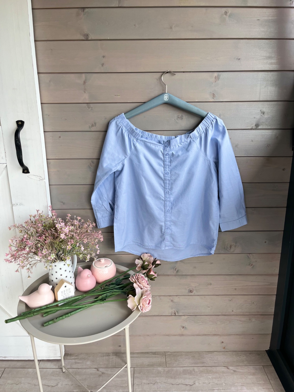 Bavlnena bledomodra, v dobrom stave. Padajuce ramena.