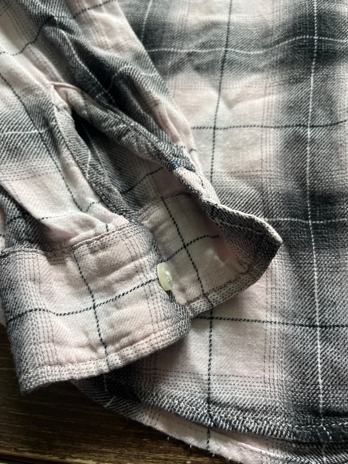 Ružovo-sivá, tenší flanel. Pekná, pohodlná bez poškodení.