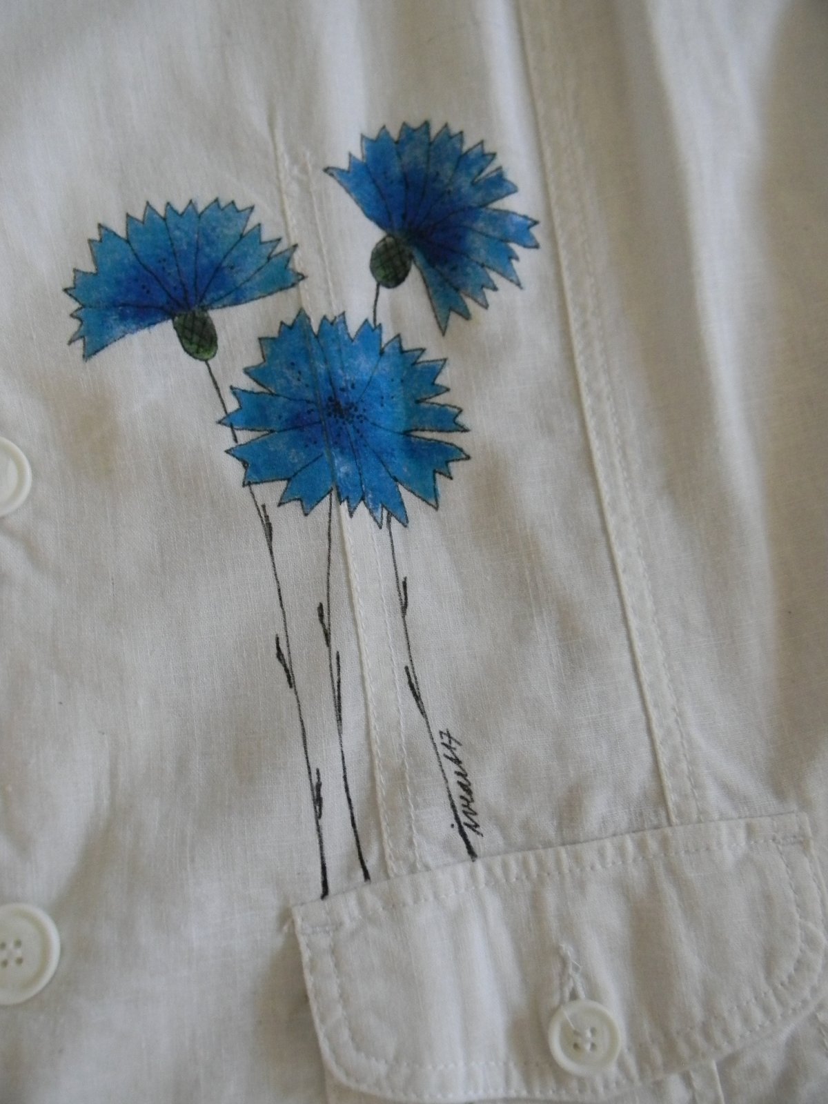 Letné ľanové sáčko s ručne maľovanými nevädzami, š. pod rukávom: 62 cm, dl. 65cm , poštovné 2.- €